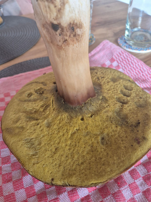 Hi bin noch recht neu in der Bestimung von Pilzen und habe bisher nur Steinpilze gesammelt die ich anhand des Typischen Netzes bestimmen konnte. Jetzt gabe ich diese beiden exemplare gefunden. Zu den ersten beiden Bildern. Ich glaube es ist ein Steinpilz aber ich bin mir unsicher da kein Netz zu erkennen ist.