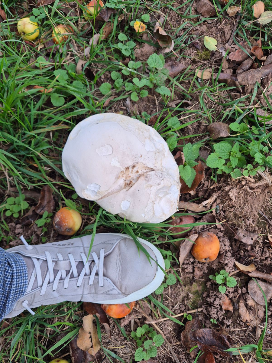 Ich wollte nur mal ein Bild von diesem schönen riesenbovist in die Gruppe stellen. Der Stand unter einem Apfelbaum.