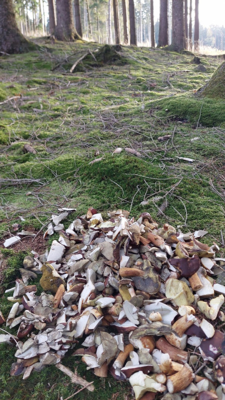 Das ist ja richtig - aber wenn dieser Riesenhaufen nur die Putzreste sind, wieviel Pilze hat dann die betreffende Person aus dem Wald geschleppt?
