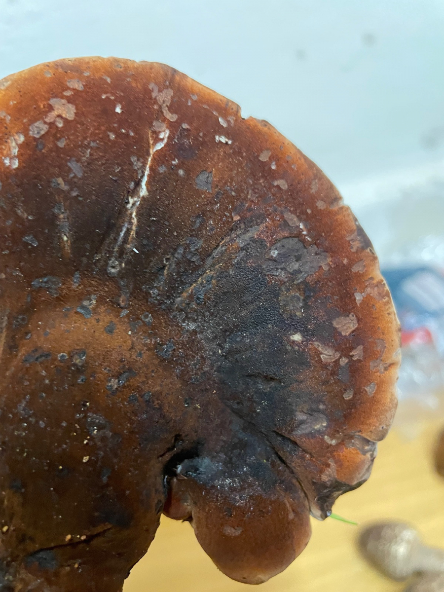 Harzporling, meint das auch Ischnoderma benzoinum? Stimmt, da gibt es auf Vergleichsbildern von jüngeren Exemplaren diese samtige Oberfläche, die Steffka beschreibt.