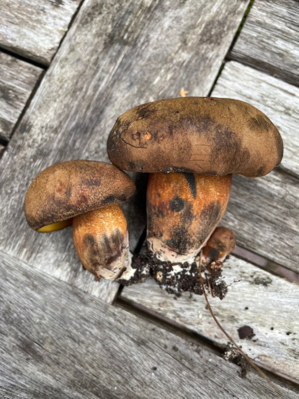 Handelt es sich um den Schwarzblauenden Röhrling (Cyanoboletus pulverulentus) oder was ganz anderes?