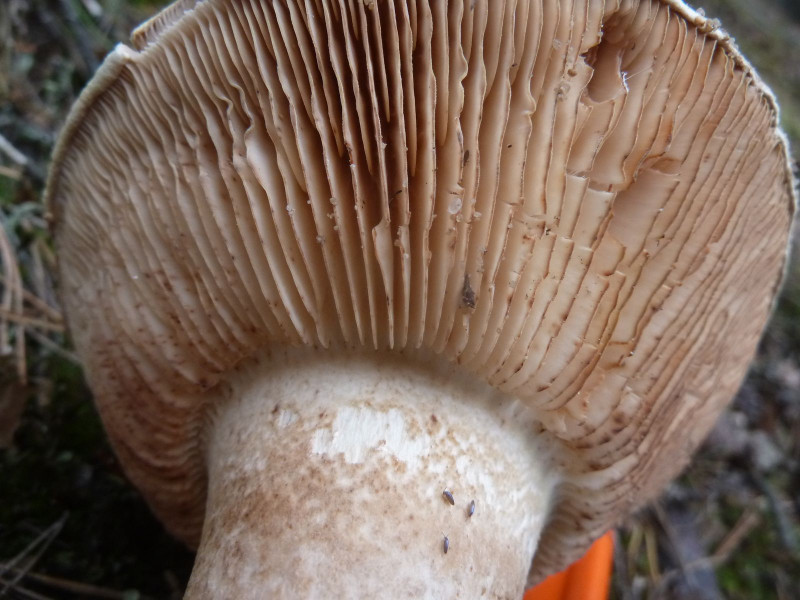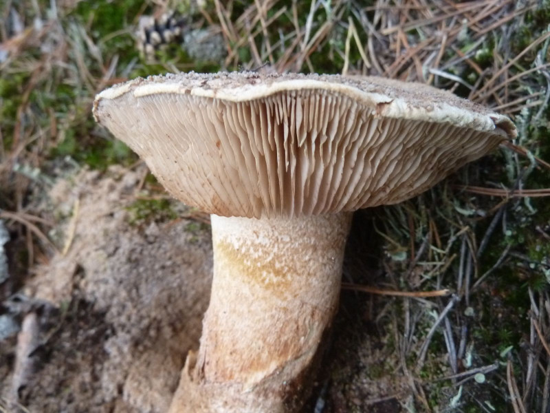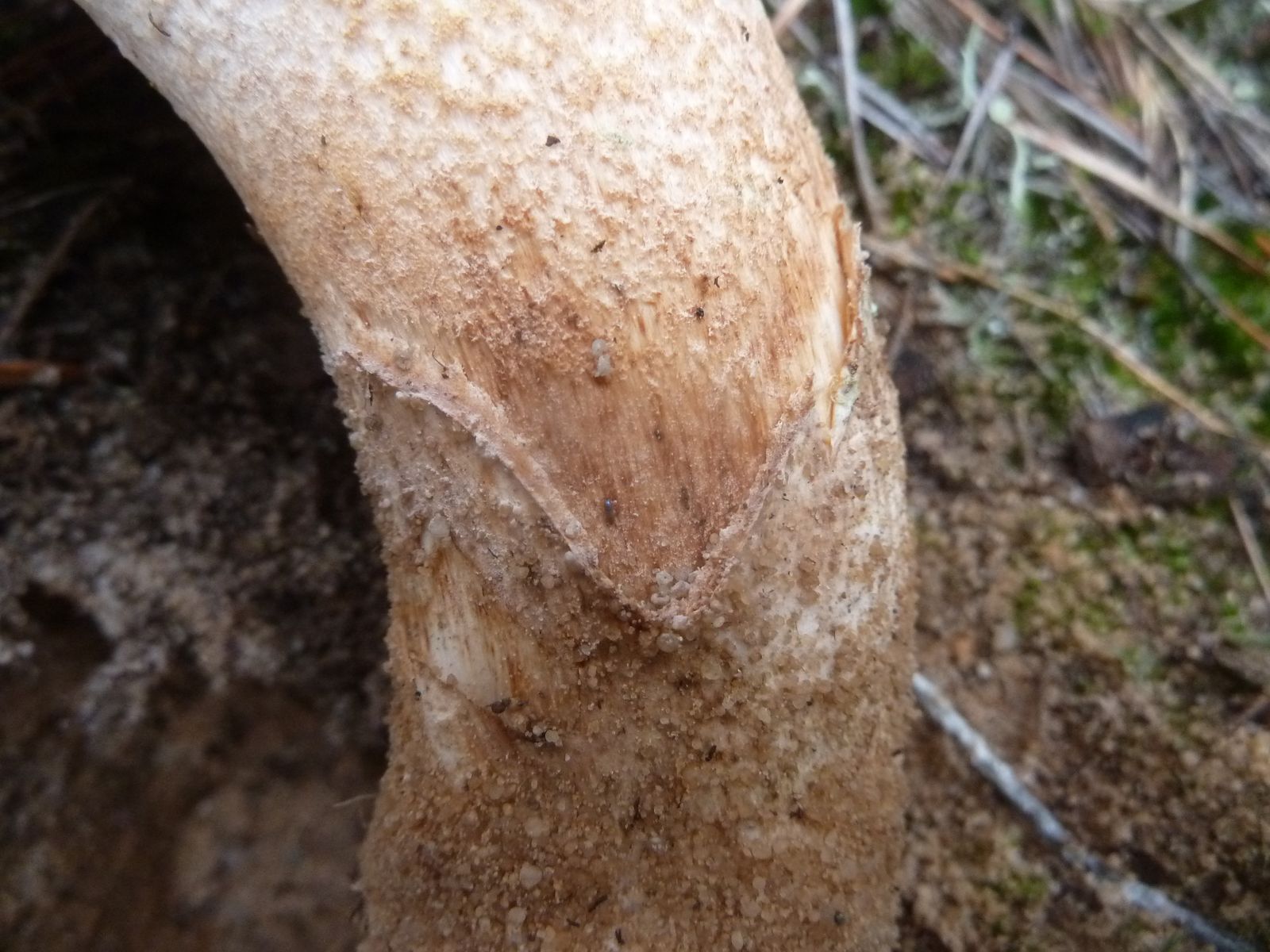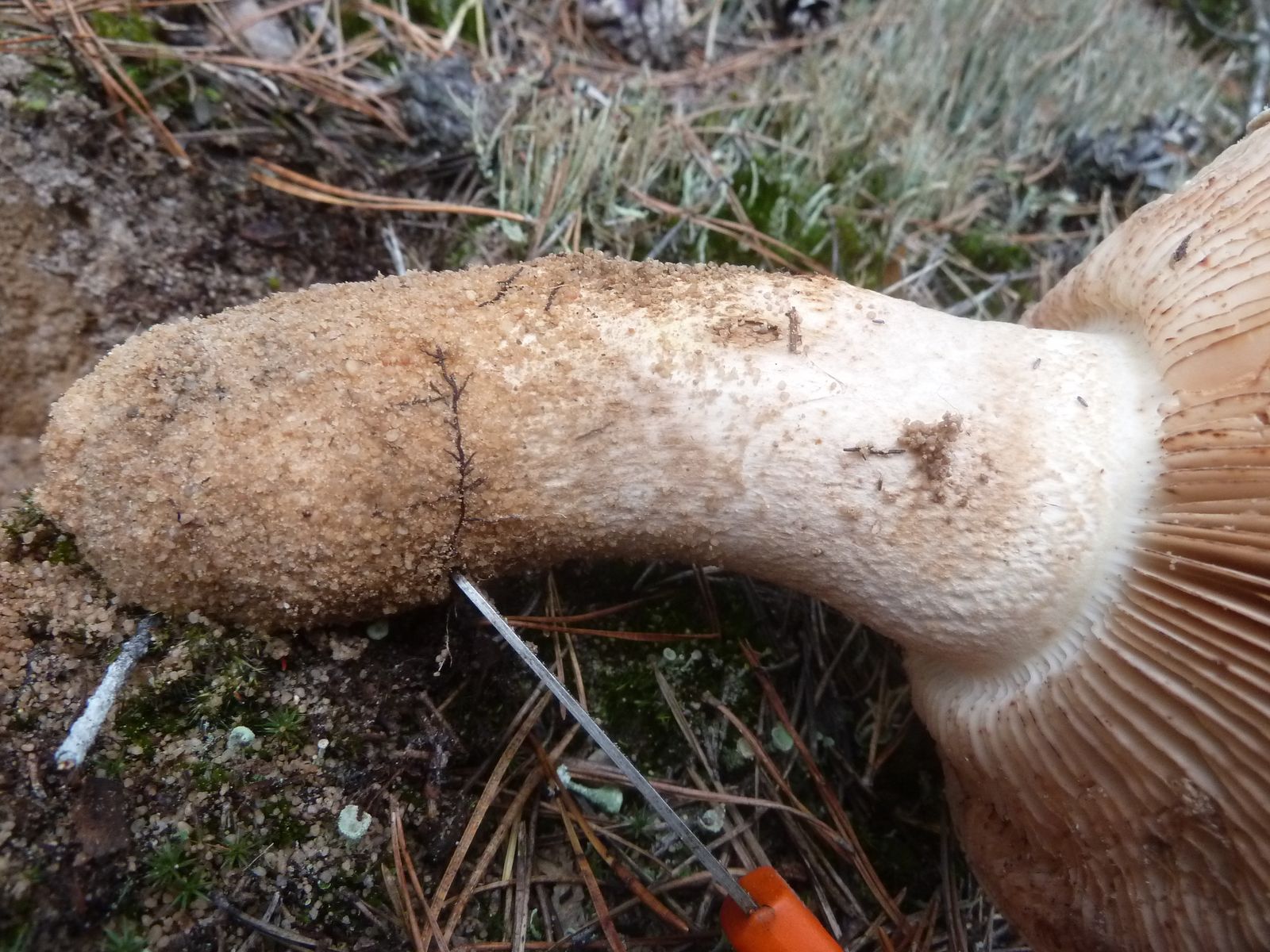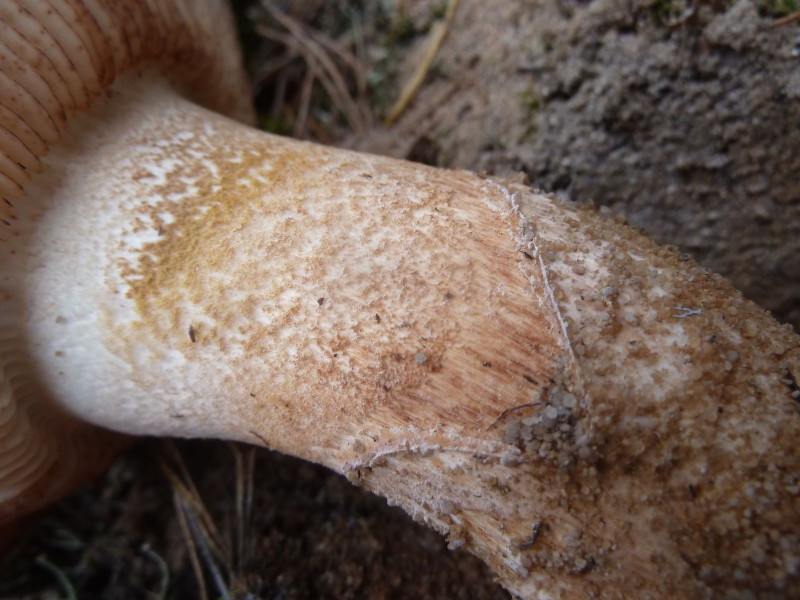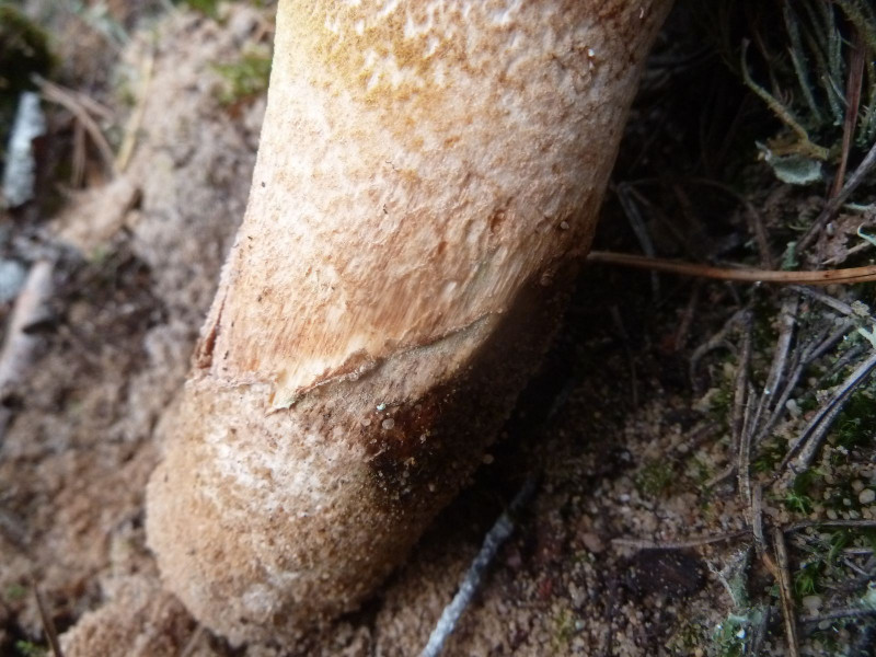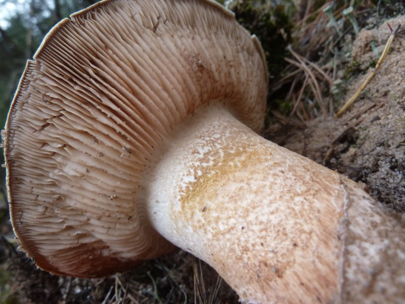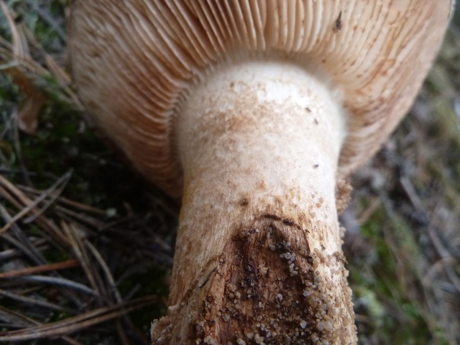 ... innerhalb einer Woche. Gut 100 Meter vom Fundort vergangener Woche habe ich heute einen einzelnen Fruchtkörper aus dem sehr sandigen Boden herauslugen sehen.