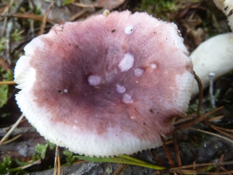 gestern habe ich im sehr sandigen und nährstoffarmen Kiefernwald ein paar Täublinge gefunden, die ich gerne benamsen würde. Ohne Mikroskop oft schwierig, aber in so einem extremen Habitat mit Kiefern-Monokultur sollte sich das Kandidatenfeld zumindest etwas einengen lassen.