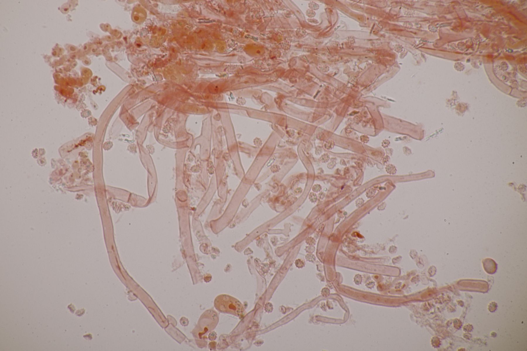 bei der gemeinsamen Exkursion des APR mit den BoBos habe ich einen hübschen, gelben Rindenpilz gefunden. Mikroskopisch hat er sich dann relativ schnell als Lindtneria entpuppt. Die Sporenmaße sind 4,1±0,3 µm × 3,1±0,3 µm, Q=1,3±0,1 bzw. 3,7-4,7 µm × 2,6-3,6 µm, Q=1,2-1,5. Damit landet man beim Schlüssel in FE 12 sehr schnell bei Lindtneria brevispora. Die Sporenmaße in der Beschreibung werden dort aber deutlich größer, nämlich mit 5-5,5 x 3-3,5 µm angegeben. Paßt mein Fund trotzdem noch zu dieser Art? Andere Lindtneria-Arten mit derart kleinen Sporen scheint es ja nicht zu geben.