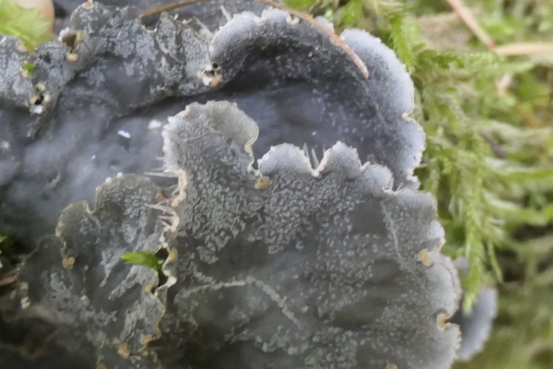 Ich glaube sogar, blättchenartige Auswüchse (Isidirn, Phyllidien) an manchen der Ränder des Thallus zu sehen, bin mir bei der Bildqualität aber nicht sicher. Das wäre ein weiterer Hinweis in Richtung P. praetextata