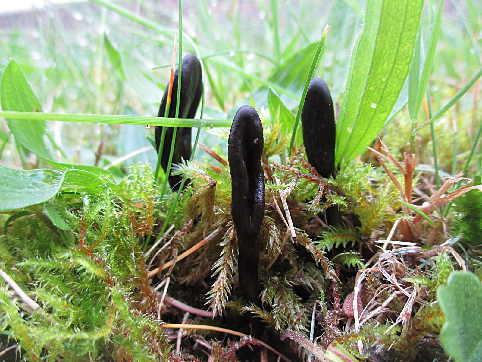 und Trichoglossum hirsutum, die Behaarte Erdzunge.