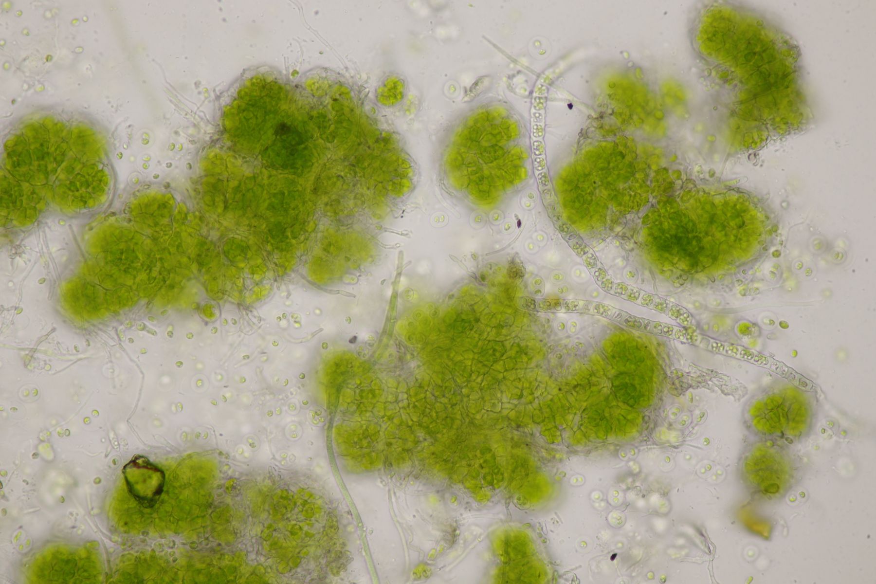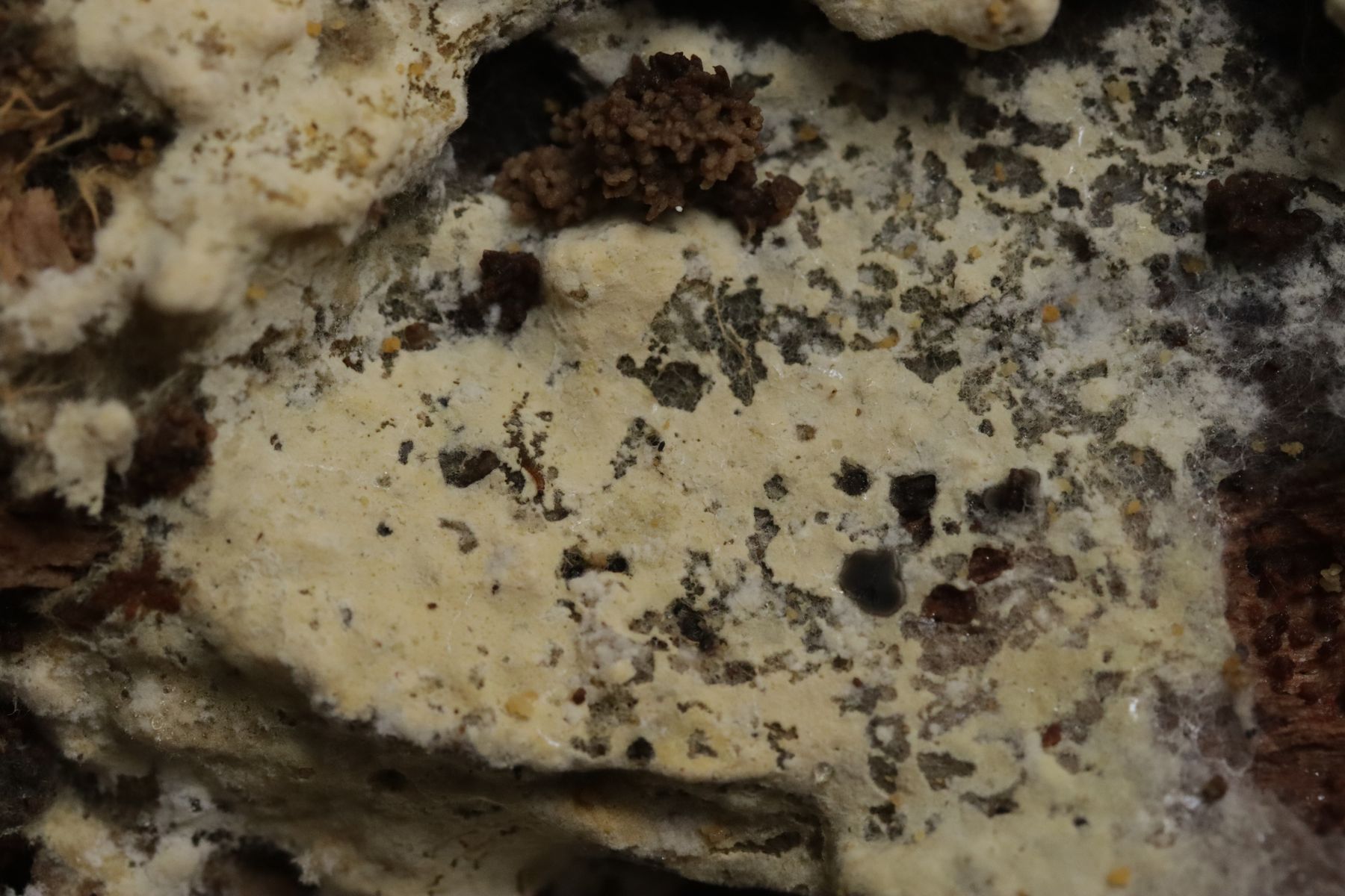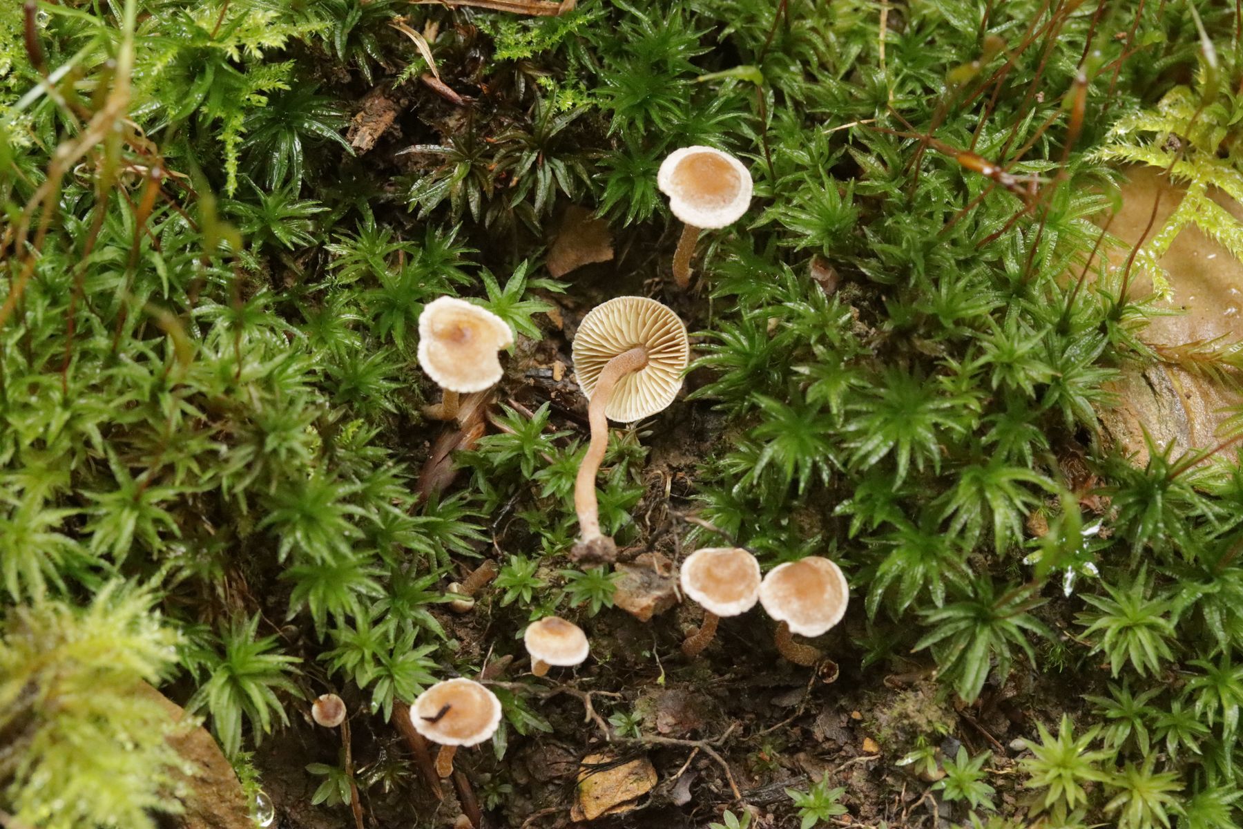 1. Der erste Fund im Herbst ist immer dieser kleine Pilz, der in der Vergangenheit als Arrhenia rustica auf der Liste gelandet ist. Als ich mir dann letztes Jahr die Sporen angeschaut habe, war schnell klar, daß es eine Lichenomphalia sein muß. Also habe ich den Pilz dieses Jahr einmal komplett mikroskopiert. Die Sporen messen 6,8±0,5 µm × 3,9±0,4 µm, Q=1,7±0,2; 6,1-7,6 µm × 3,1-4,5 µm, Q=1,5-2,1, Schnallen sind nicht vorhanden, Cheilozystiden fehlen ebenso, die Basidien sind 1- bis 4-sporig. Leider habe ich jetzt immer noch keine gute Idee, um welche Art es sich hier genau handelt; es scheint auch wenig gute Literatur zu dieser Gattung zu geben.