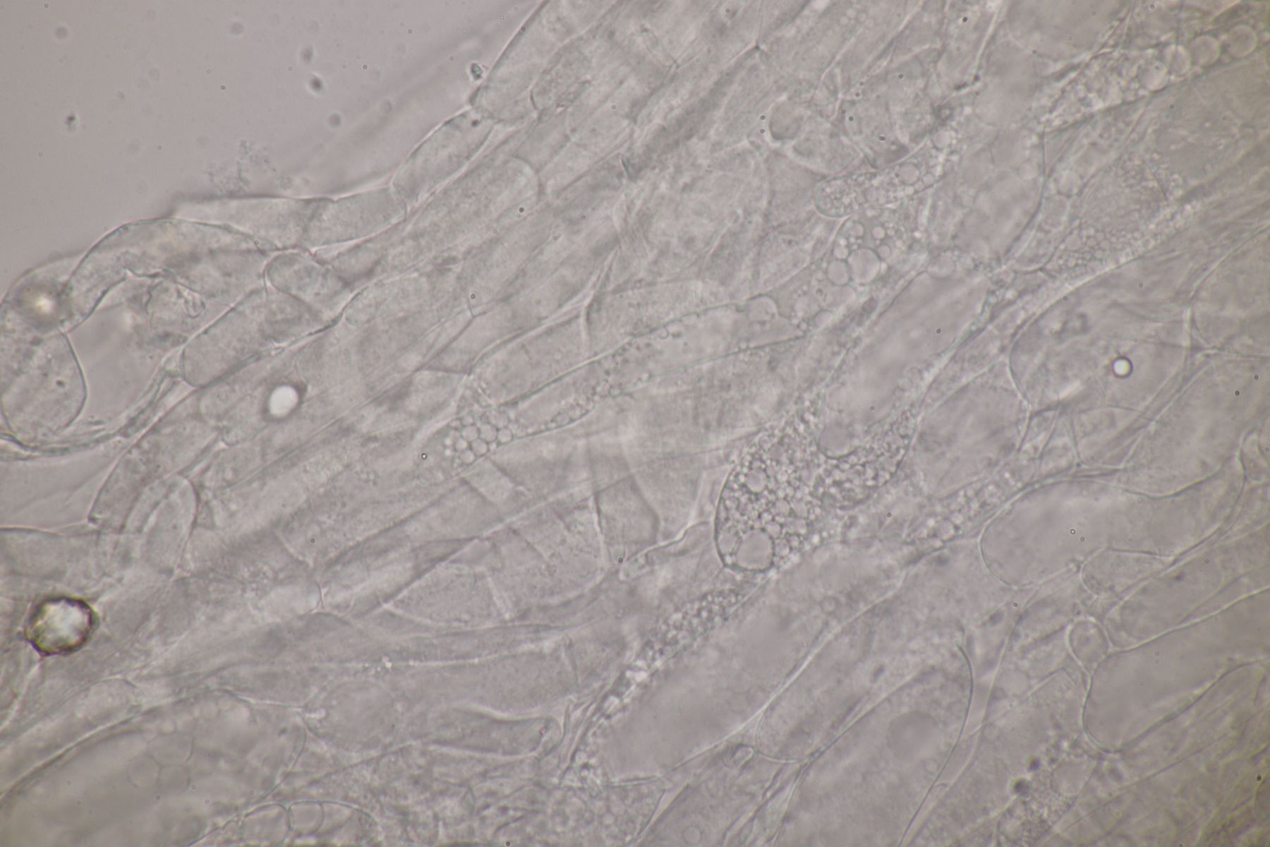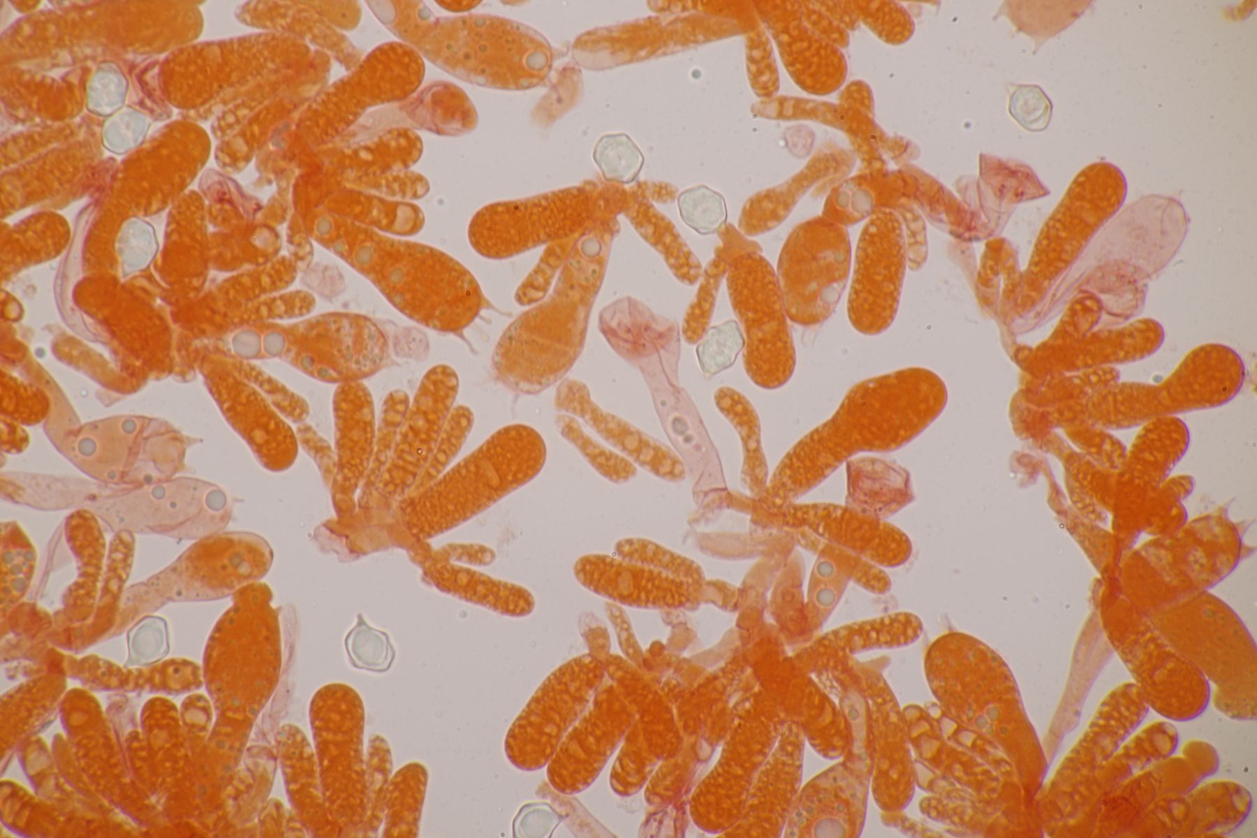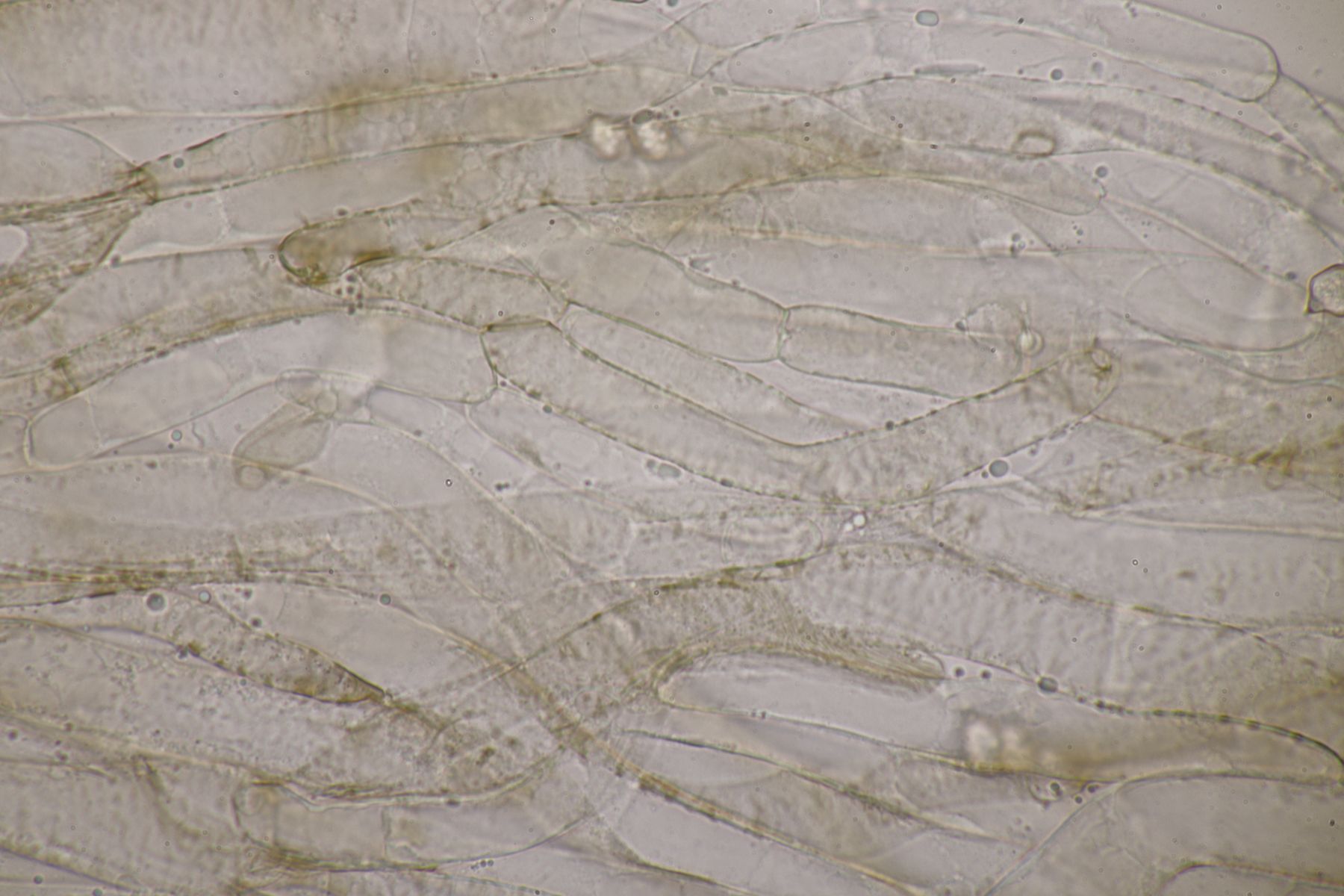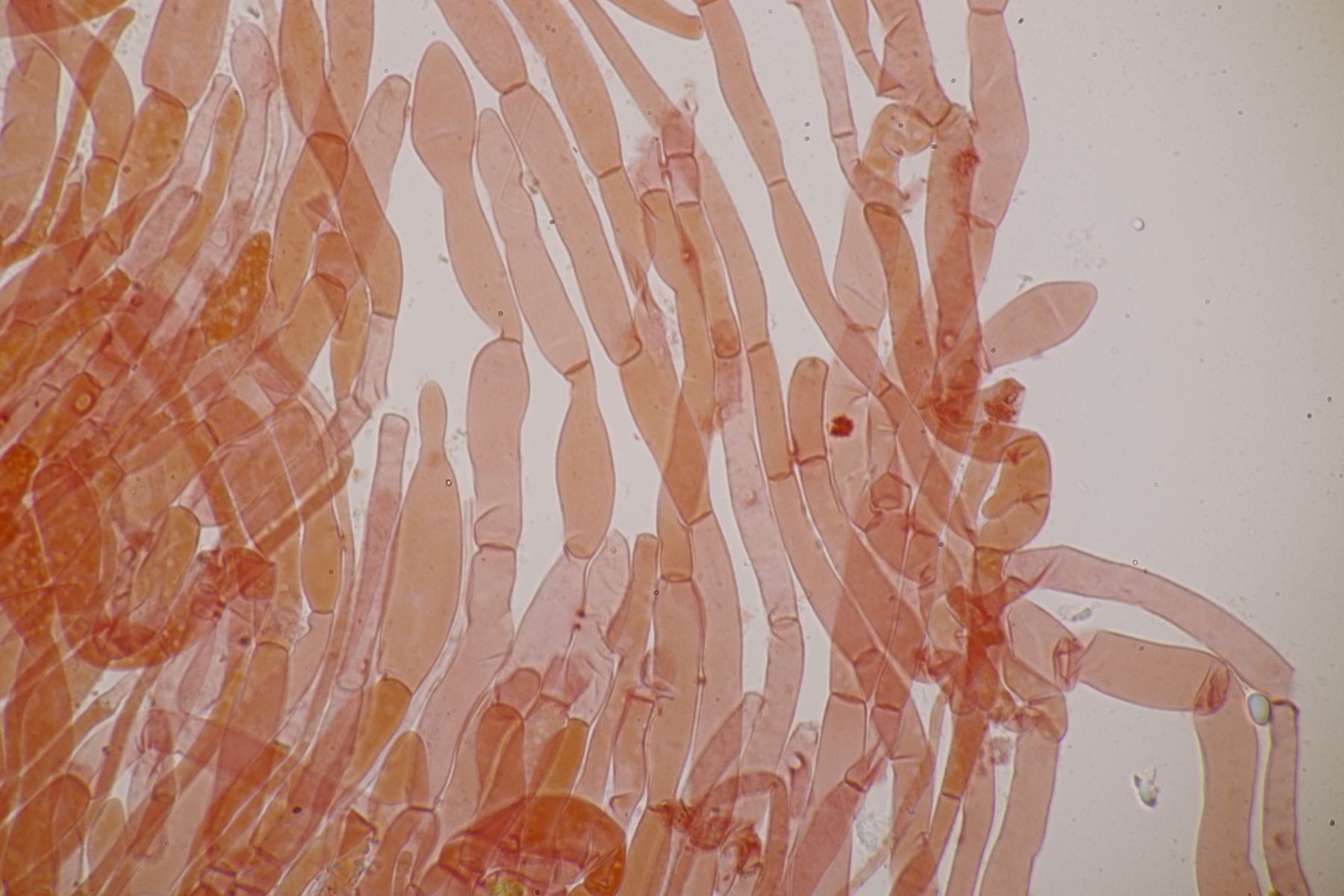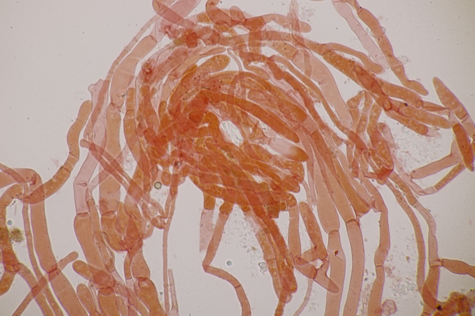2. Der nächste mysteriöse Pilz. Eine Keule, die von den Sporen her zu C. falcata passen würde, aber die sollte ja nicht so einen Gelbstich haben. Sporenmaße 8,1±0,5 µm × 6,9±0,5 µm, Q=1,2±0,1; 6,9-9 µm × 5,6-7,7 µm, Q=1,1-1,3