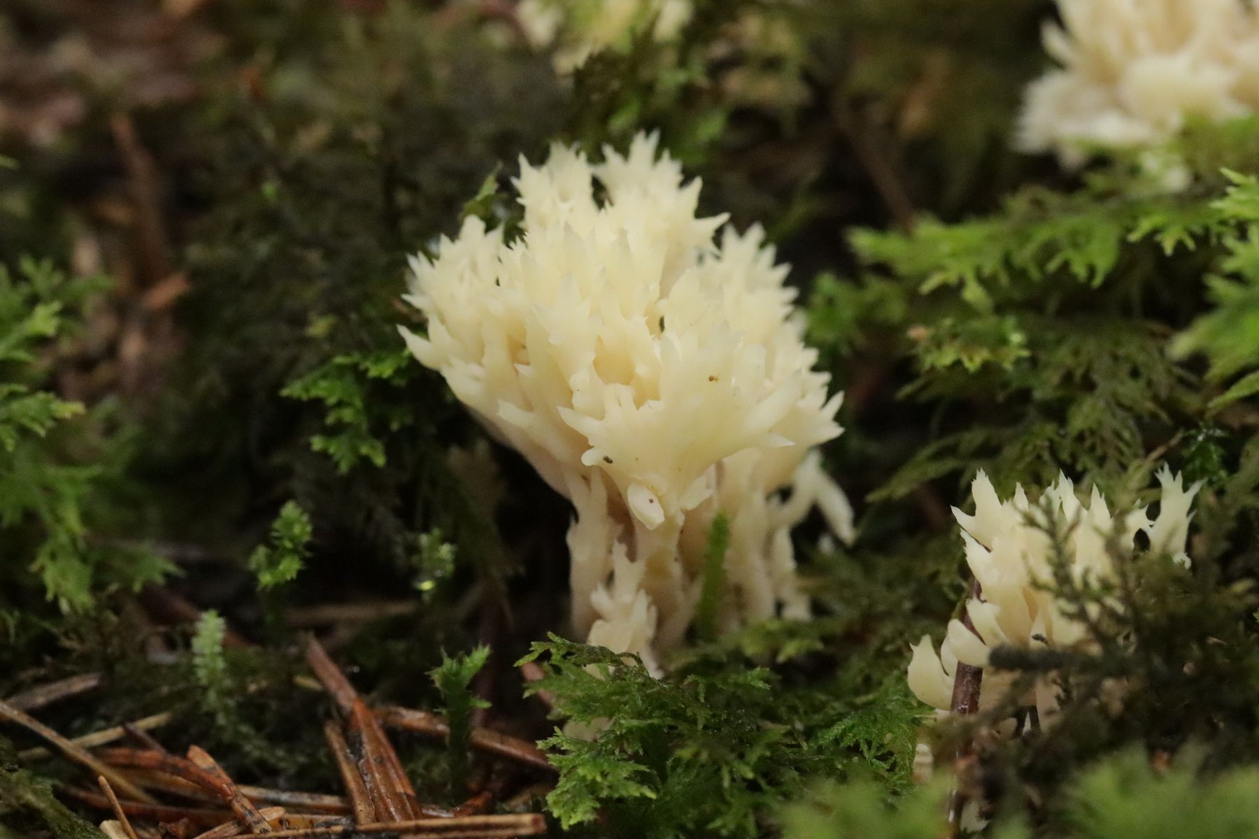 bei der Keule würde ich Clavaria flavipes vermuten. Bei der Gruppe im Hintergrund sieht man bei der linken deutlich den abgesetzt gelben sterilen Fuß. Das Oberteil kann auch mal weiß sein.