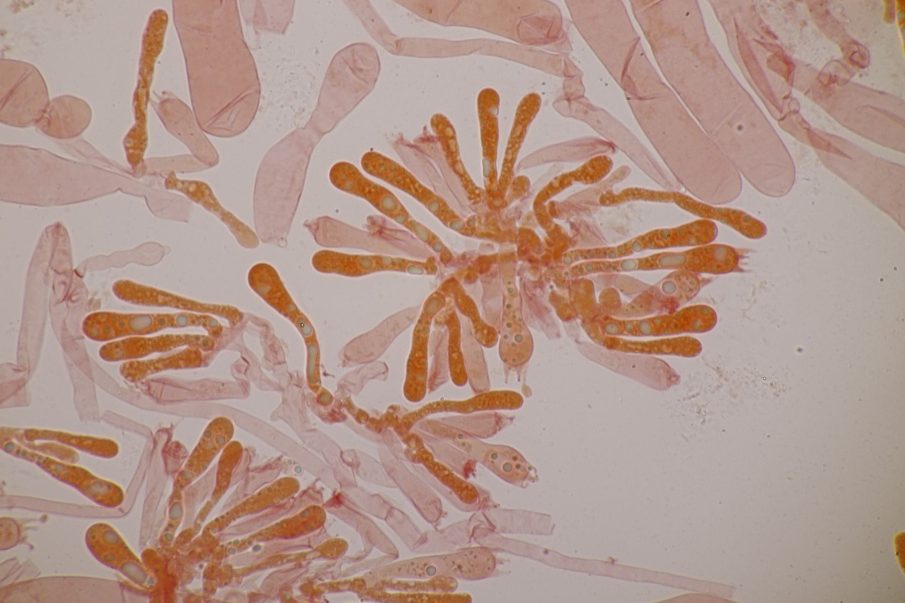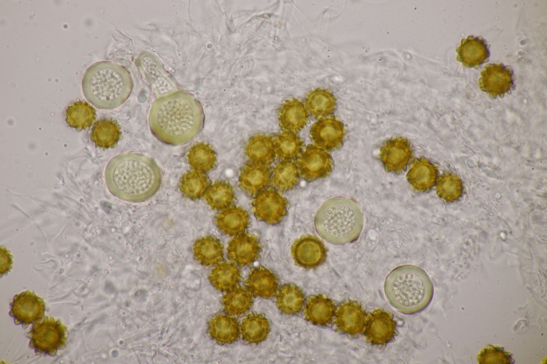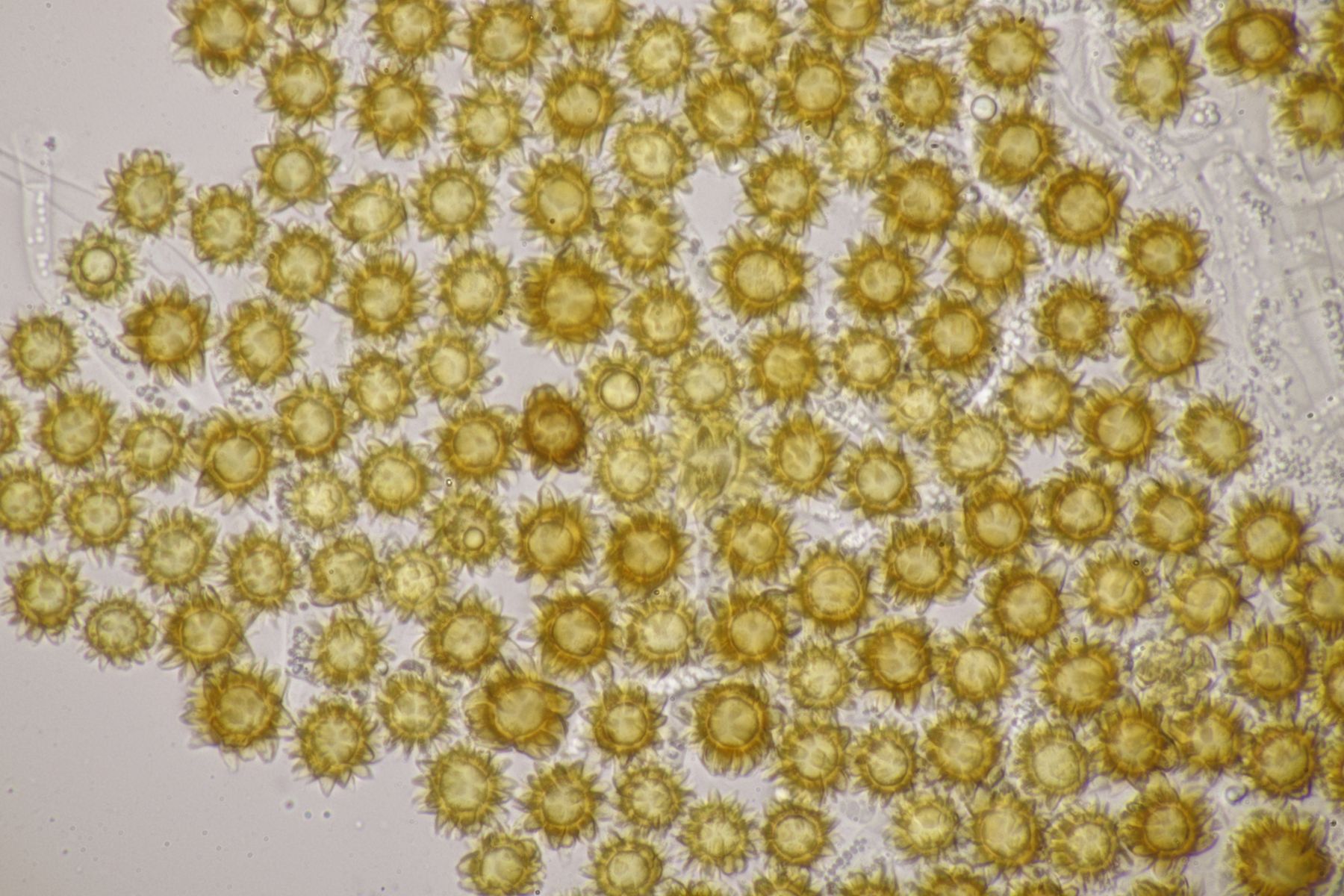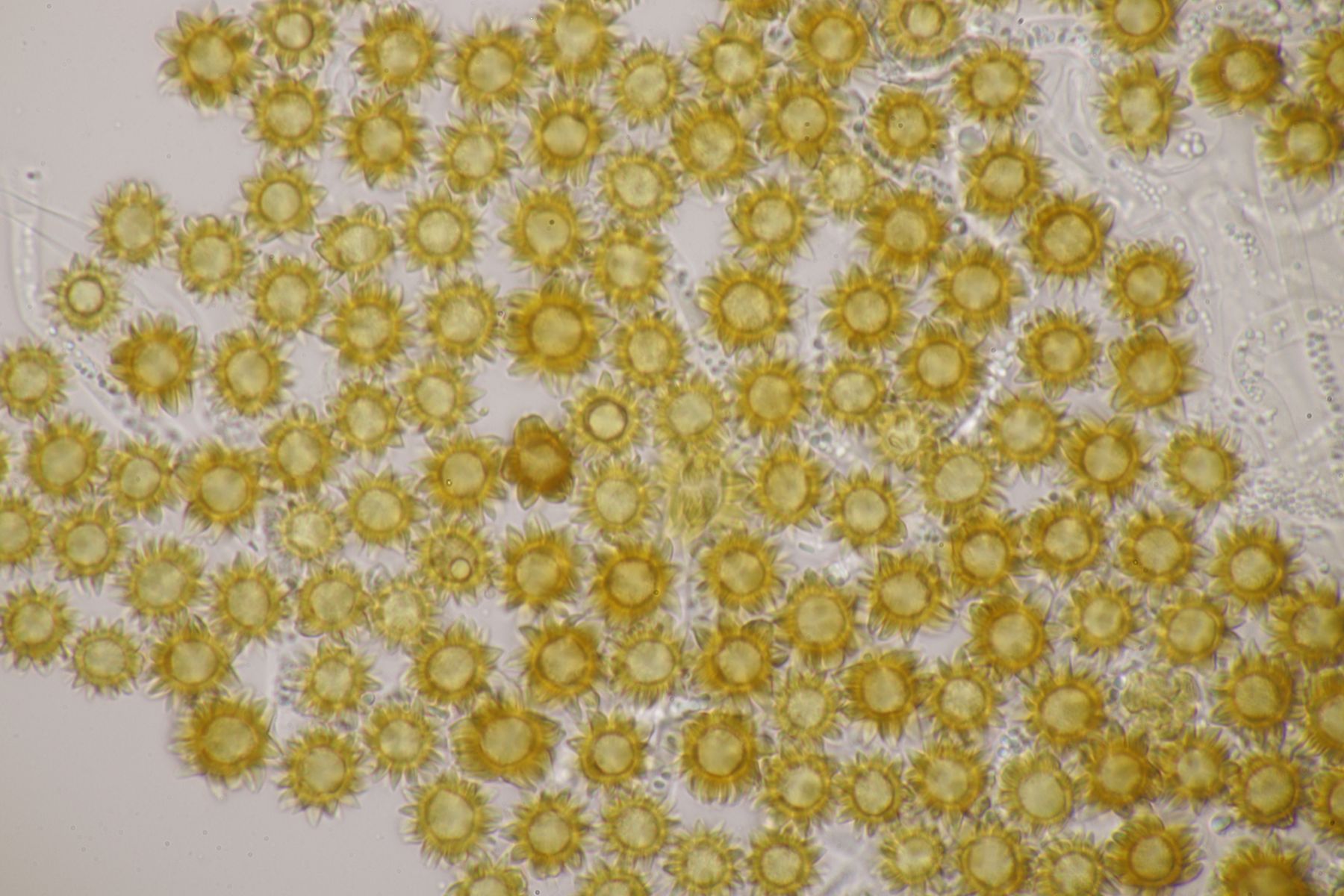 C. flavostellifera hätte Sporen mit fingerartigen Auswüchsen.