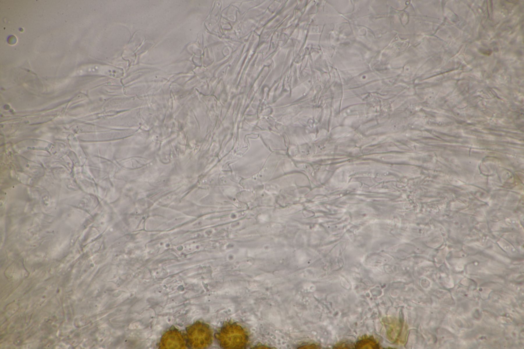 zur Lichenomphalia: Mit dem von Raphael verlinkten Schlüssel kommt man ja eigentlich nur zu L. meridionalis. Wenn man dann mit Beschreibungen der Art vergleicht, scheint auch alles ganz gut zu passen (insbesondere die schwache Inkrustination der Huthauthyphen spricht gegen L. velutipes). Allerdings sind die Angaben zu Sporengrößen in der Literatur unterschiedlich. Im Schlüssel 5,2-7,5 µm passend zu meinem Fund, bei Barrasa dann 7,6-11 µm, was deutlich zu groß ist.