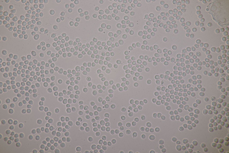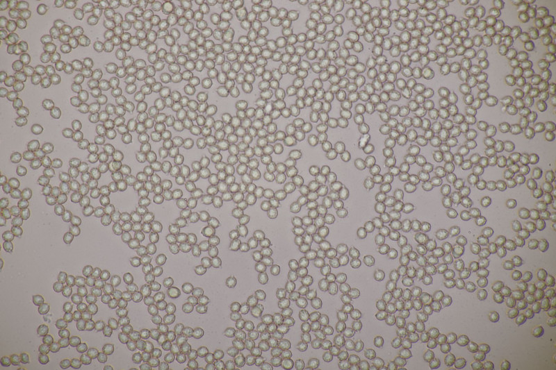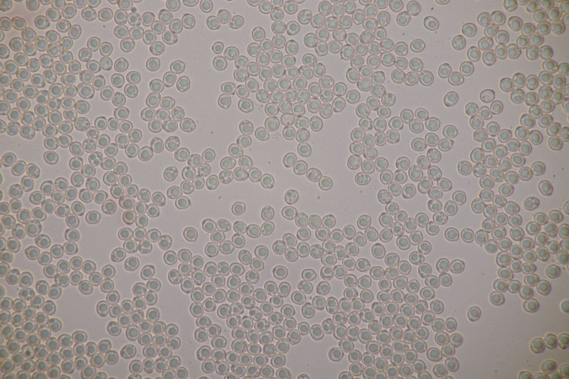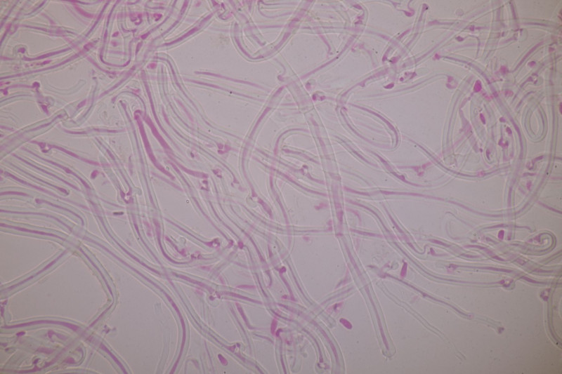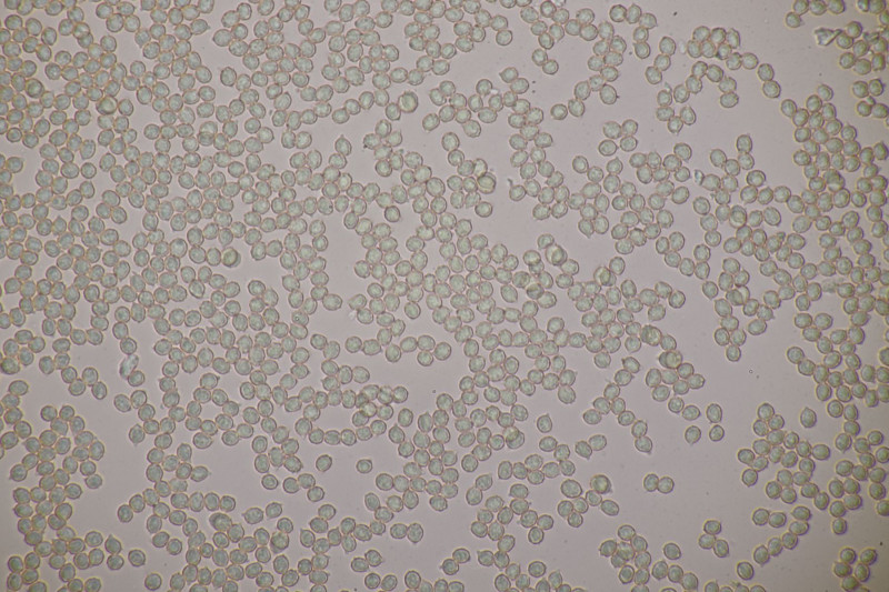 3. Ascocoryne sarcoides mit 2 großen Öltropfen in den Sporen