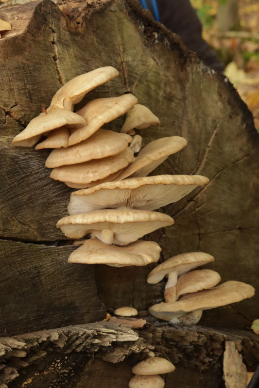 30. Und auch hier gab es noch mal Hypsizygus tessulatus, diesmal deutlich üppiger und besser zu fotografieren als in der Trupbacher Heide. Sporen messen 5±0,2 µm × 4,5±0,2 µm, Q=1,1±0; 4,5-5,5 µm × 4,2-4,9 µm, Q=1-1,2.