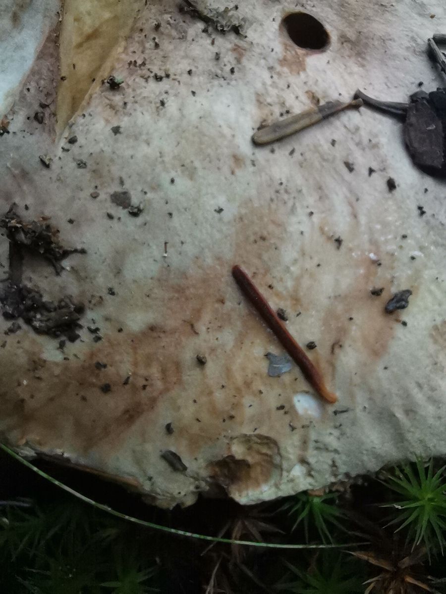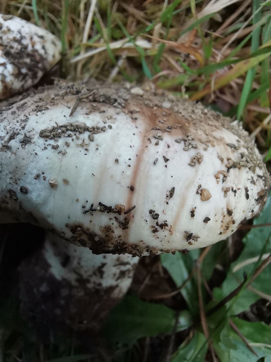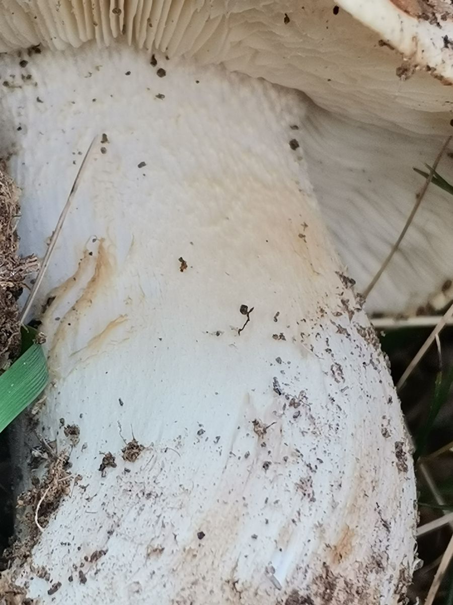 Nach mechanischer Beanspruchung verfärben sich Hut und Lamellen orangebräunlich - siehe Fotos.