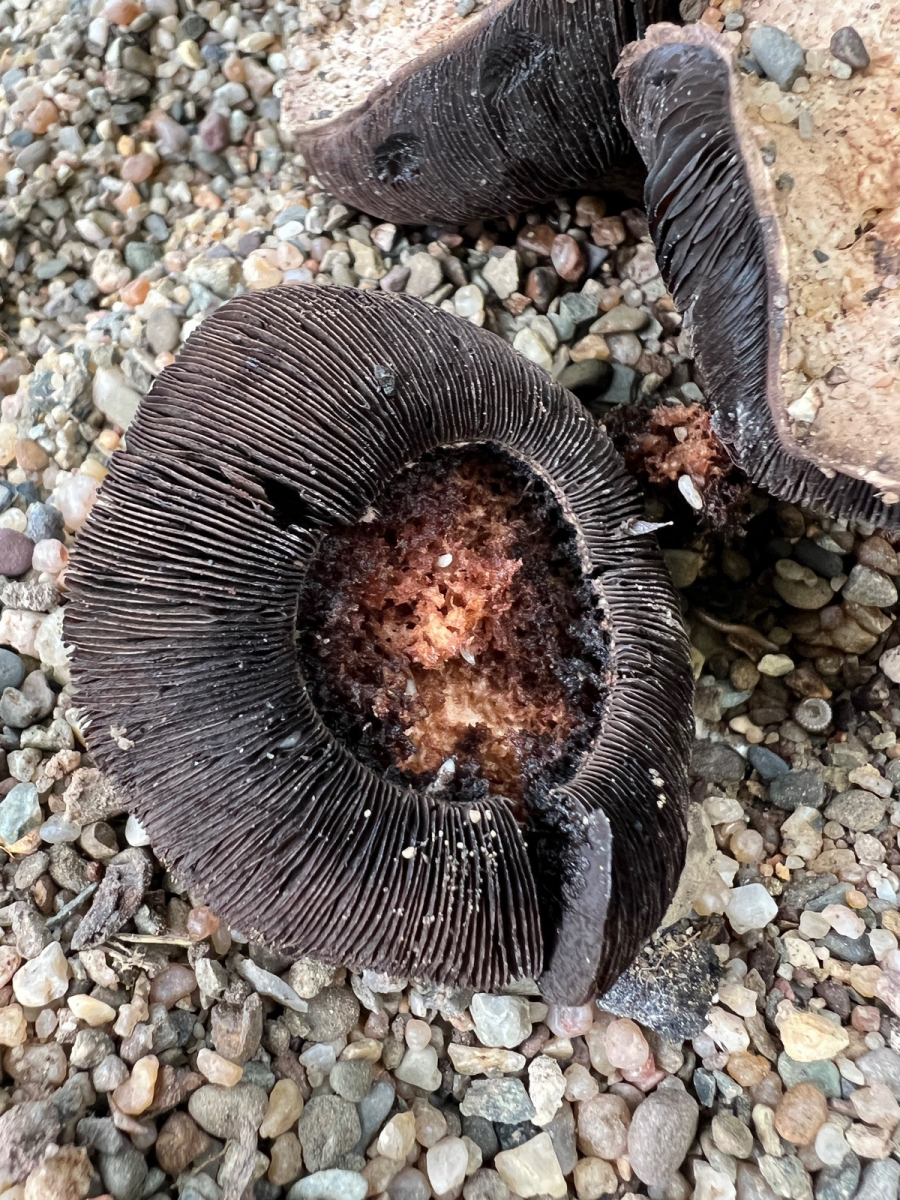 - dunkelbraune, samtig wirkende, fast schwarze Lamellen