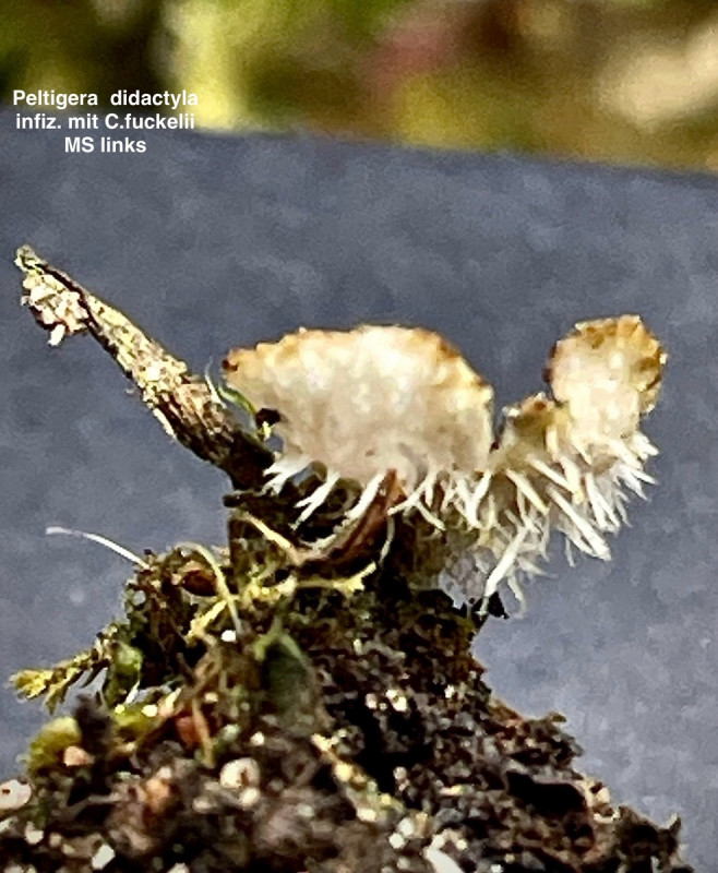C.fuckelii entwickelt sich unter der Oberfläche der Wirts-Peltigera, wobei sich Knubbel bilden welche bei Reife