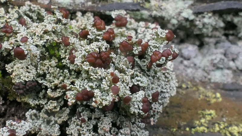 Bild 7 Nie gesehen, noch zu bestimmen - die Nässe lässt die Flechten quellen und lässt Unbekanntes noch exotischer wirken. ![]()