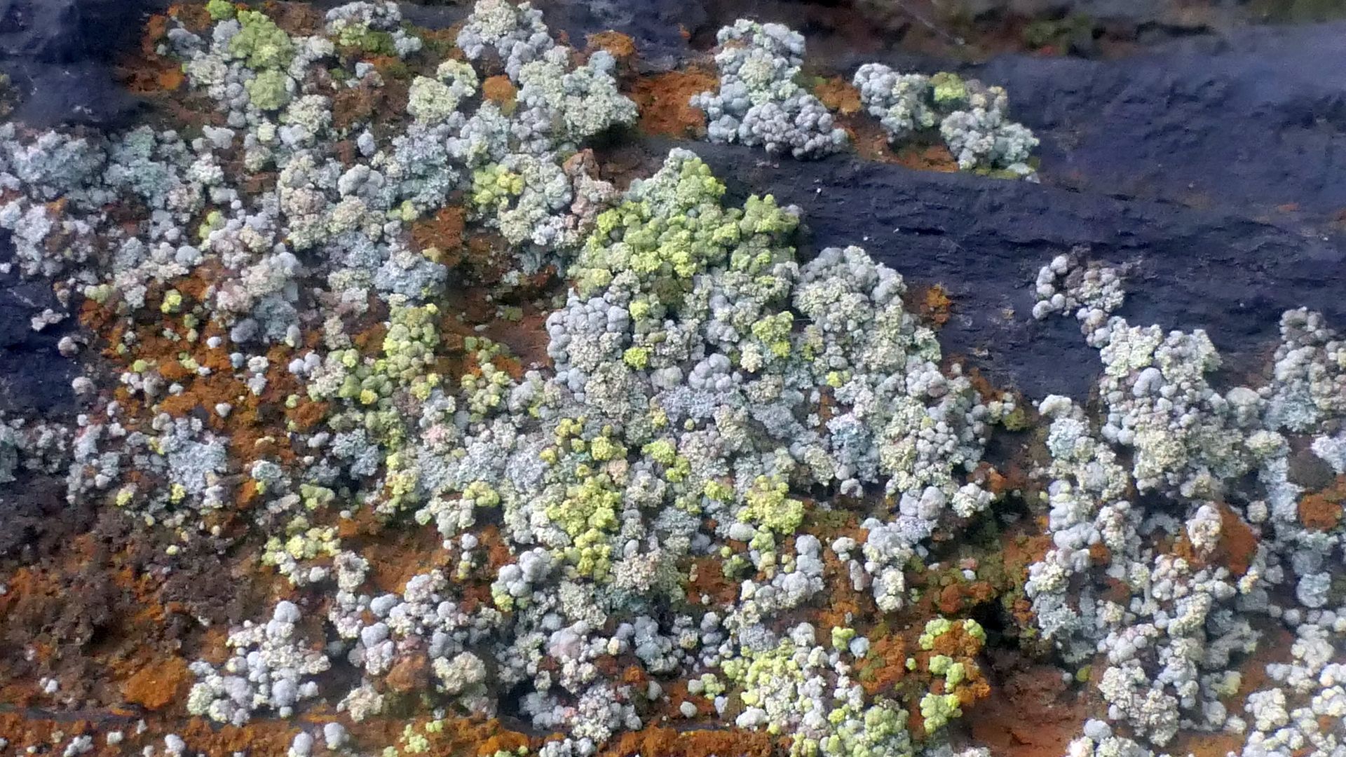 Es gibt hier Schiefermauern, die großflächig damit überzogen sind.