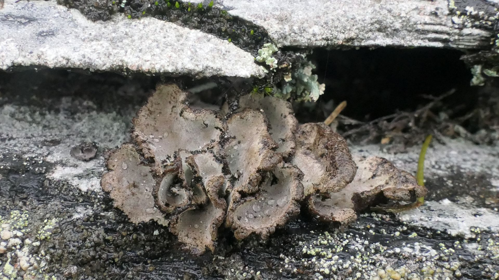 Bild 29 Eine andere Nabelflechtenart: Umbilicaria polyphylla, feucht und dadurch olivbraun.