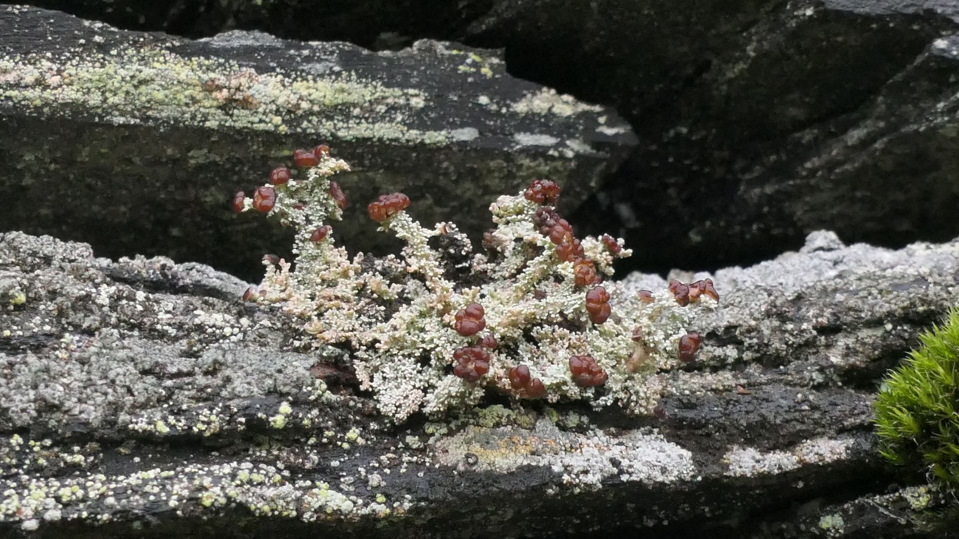 Bild 7 Nie gesehen, noch zu bestimmen - die Nässe lässt die Flechten quellen und lässt Unbekanntes noch exotischer wirken. :gklimper:
