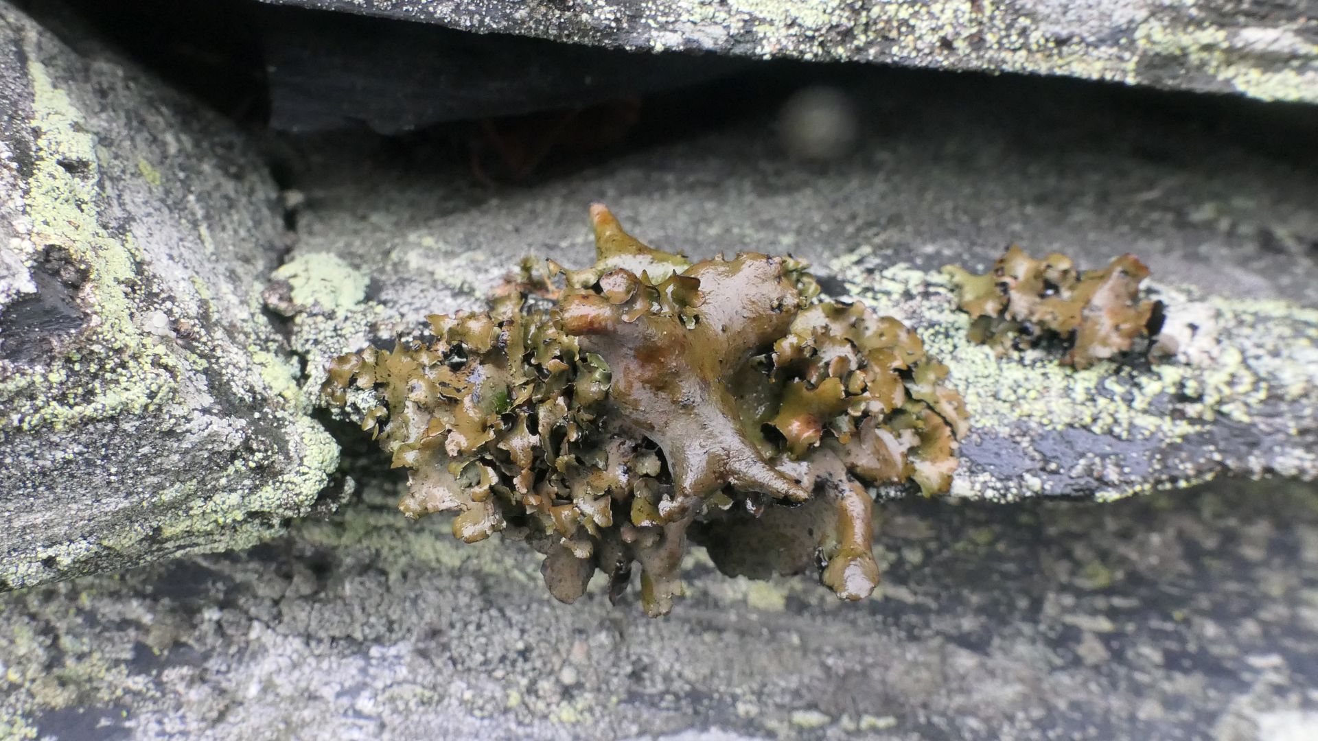 Bild 29 Eine andere Nabelflechtenart: Umbilicaria polyphylla, feucht und dadurch olivbraun.