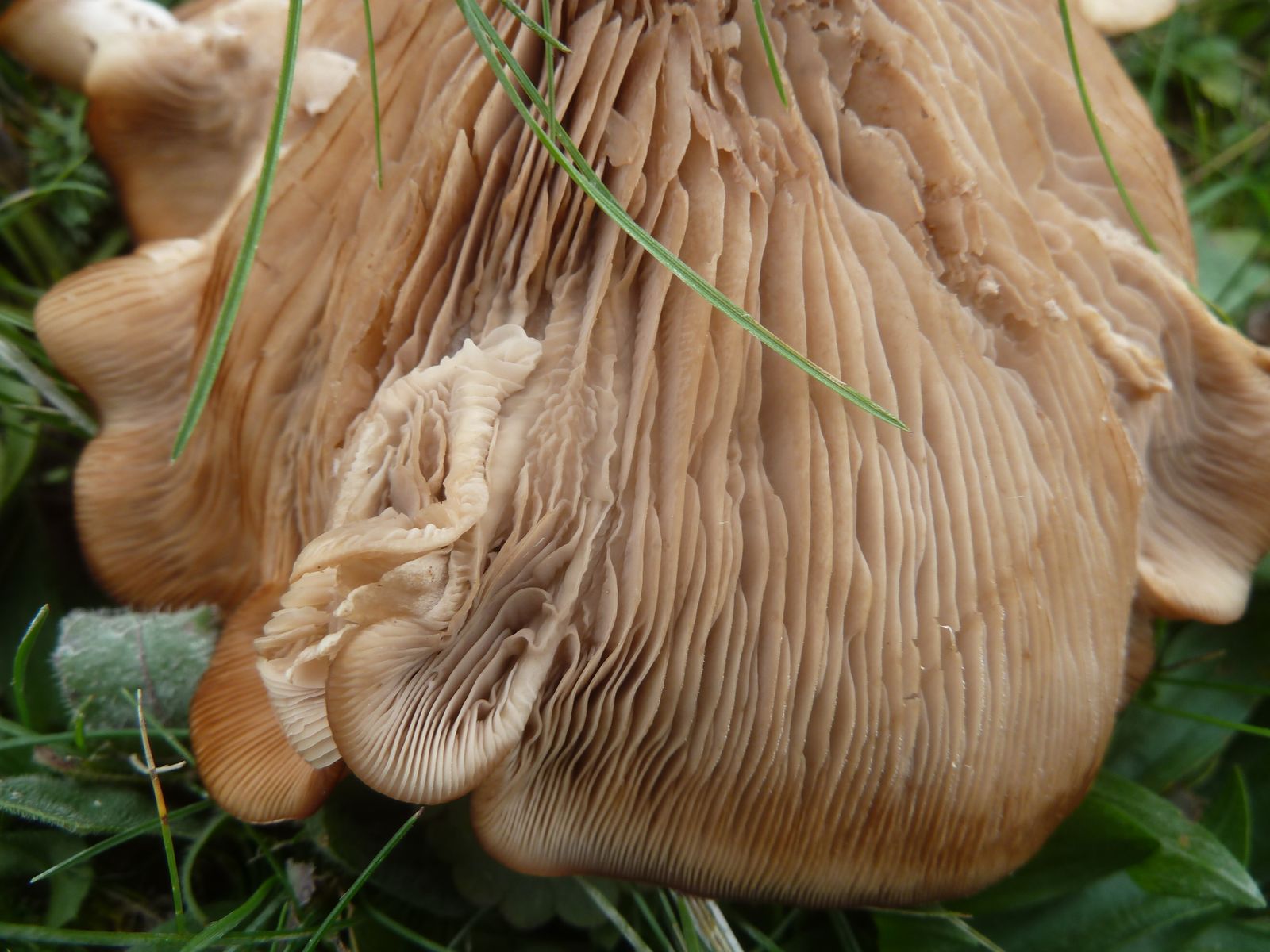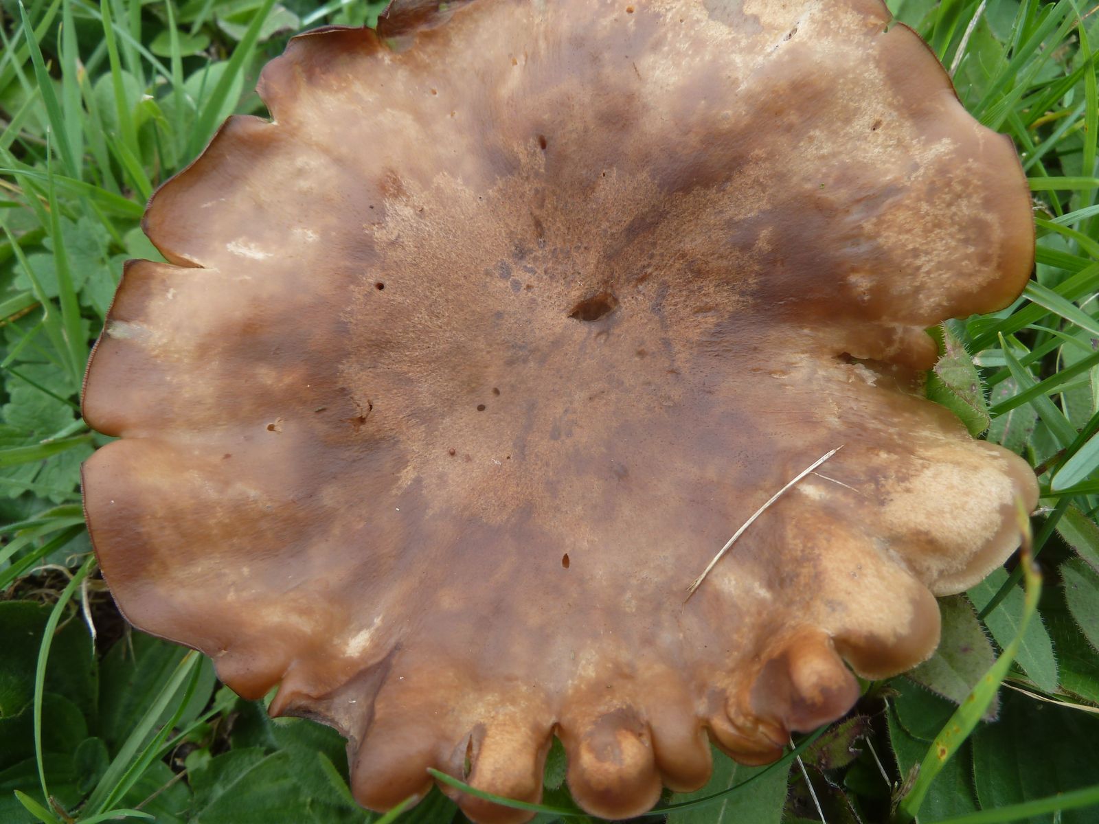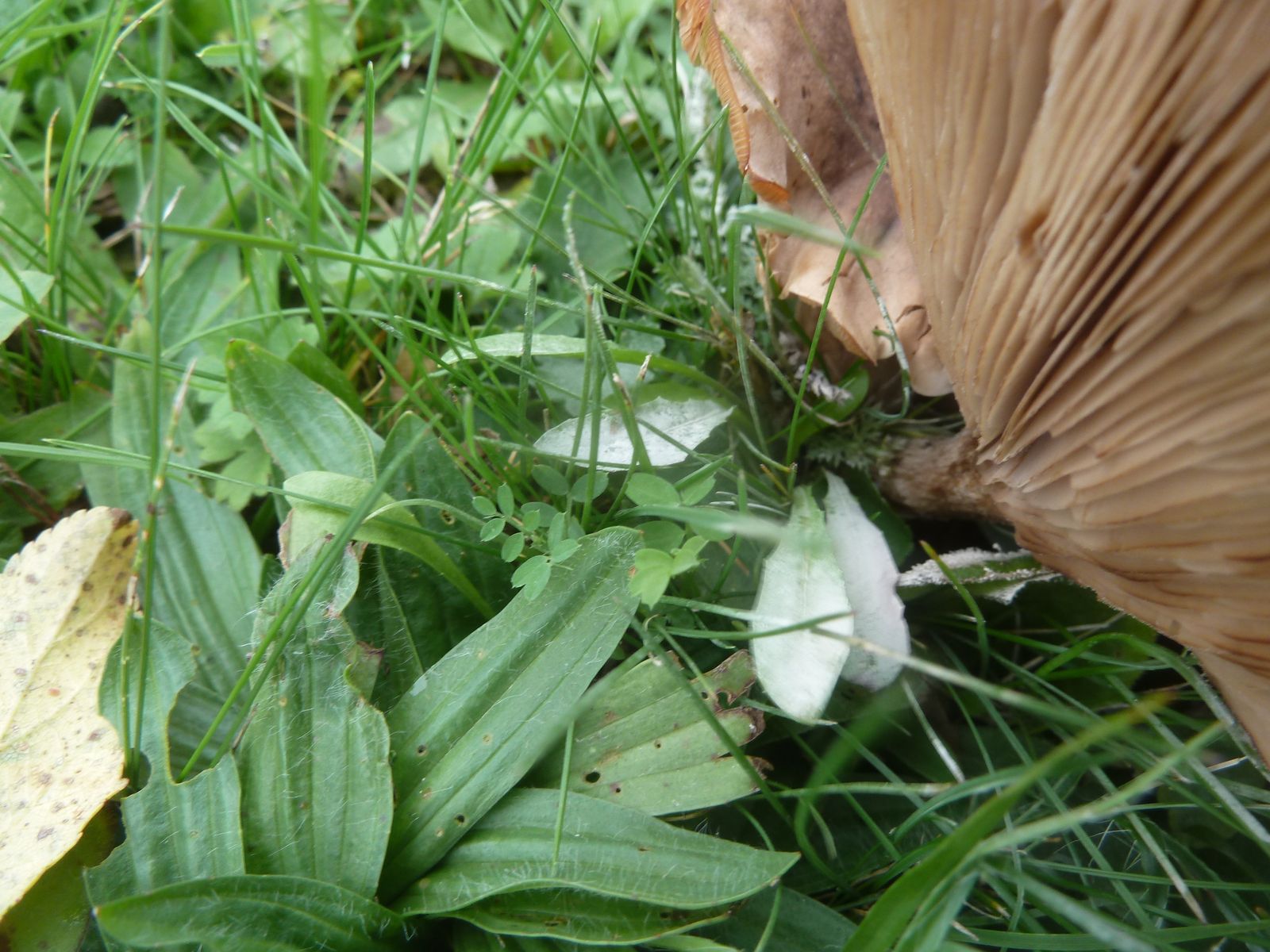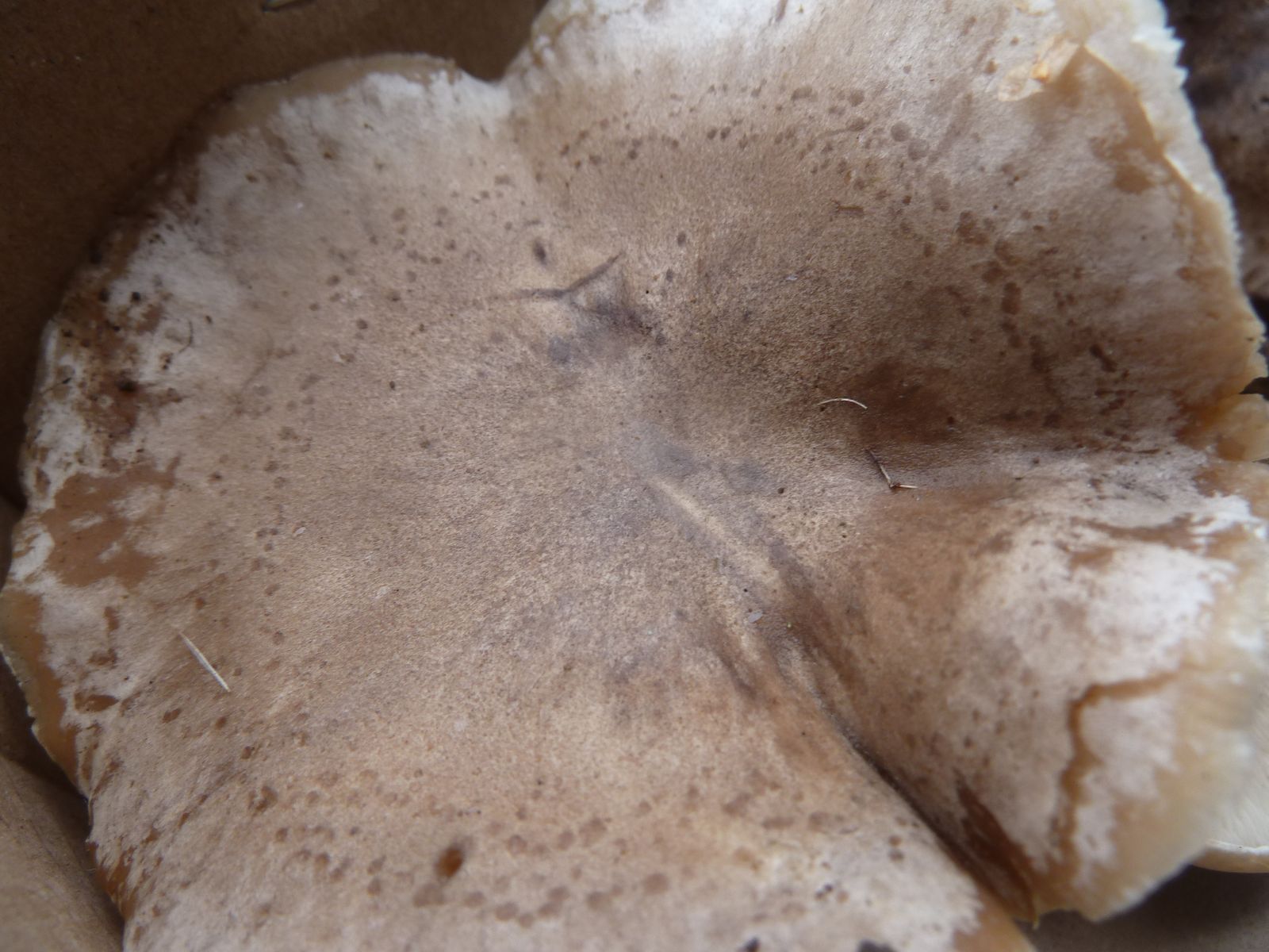 Die zweite an den Rändern und auf Druck leicht orangebräunlich verfärbende Kollektion fällt vor allem durch die lappig-unregelmäßige Hutform , dünneren Stiel und Habitus auf. Ist das überhaupt Lepista?