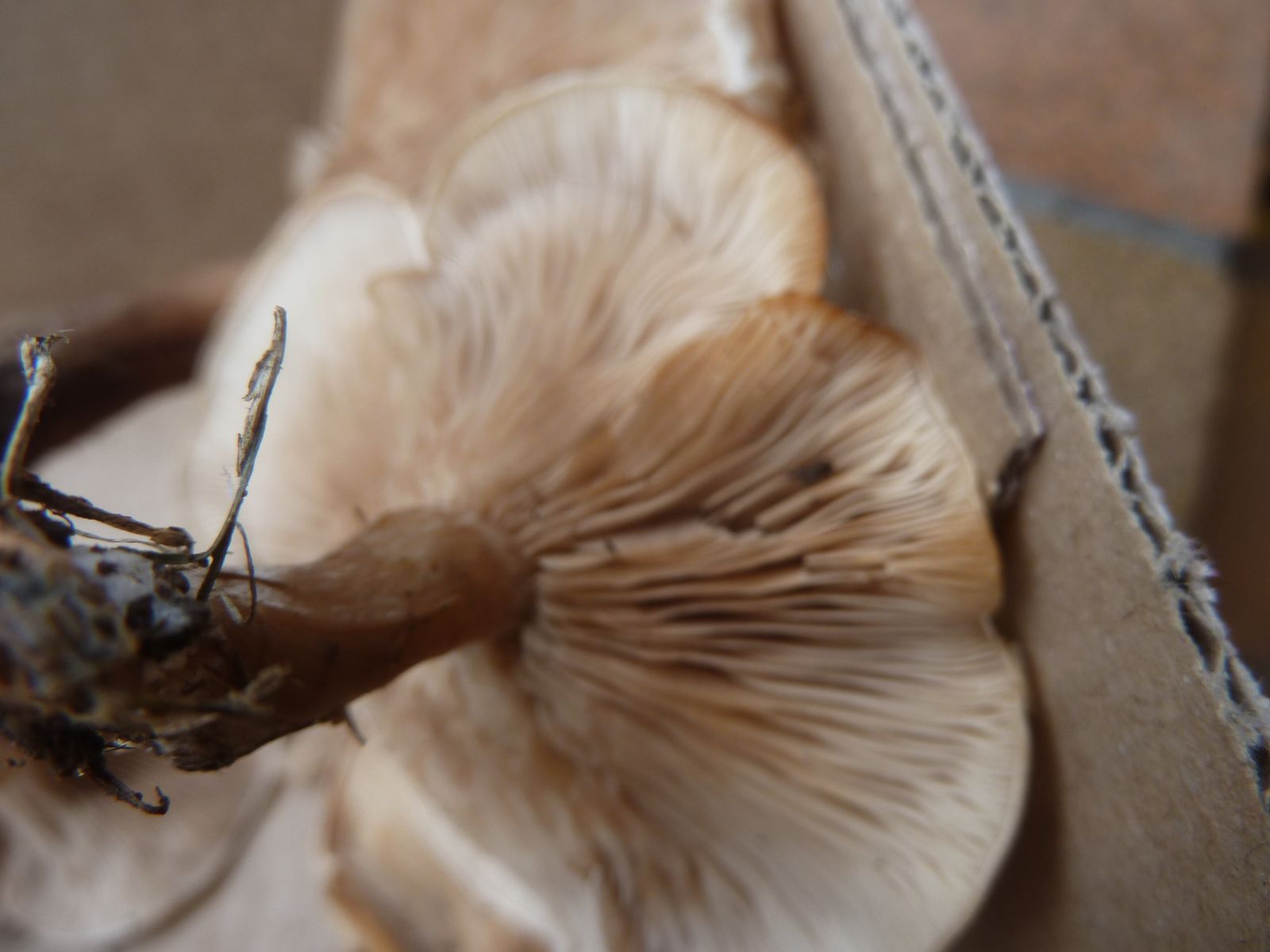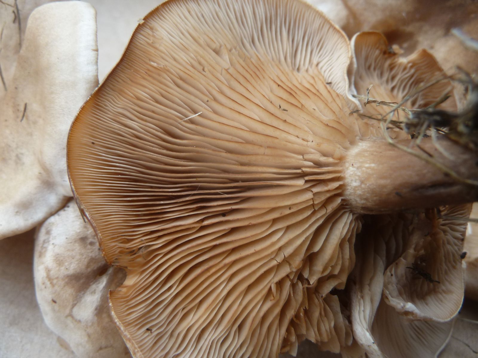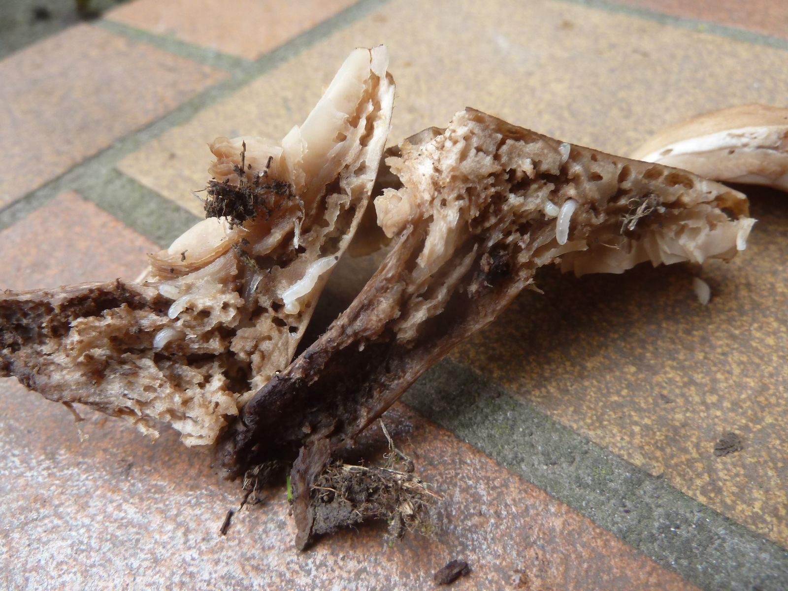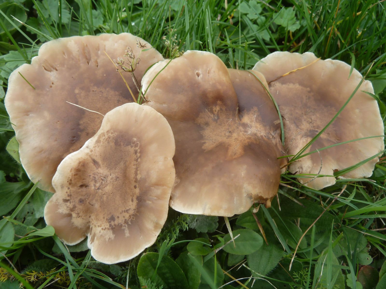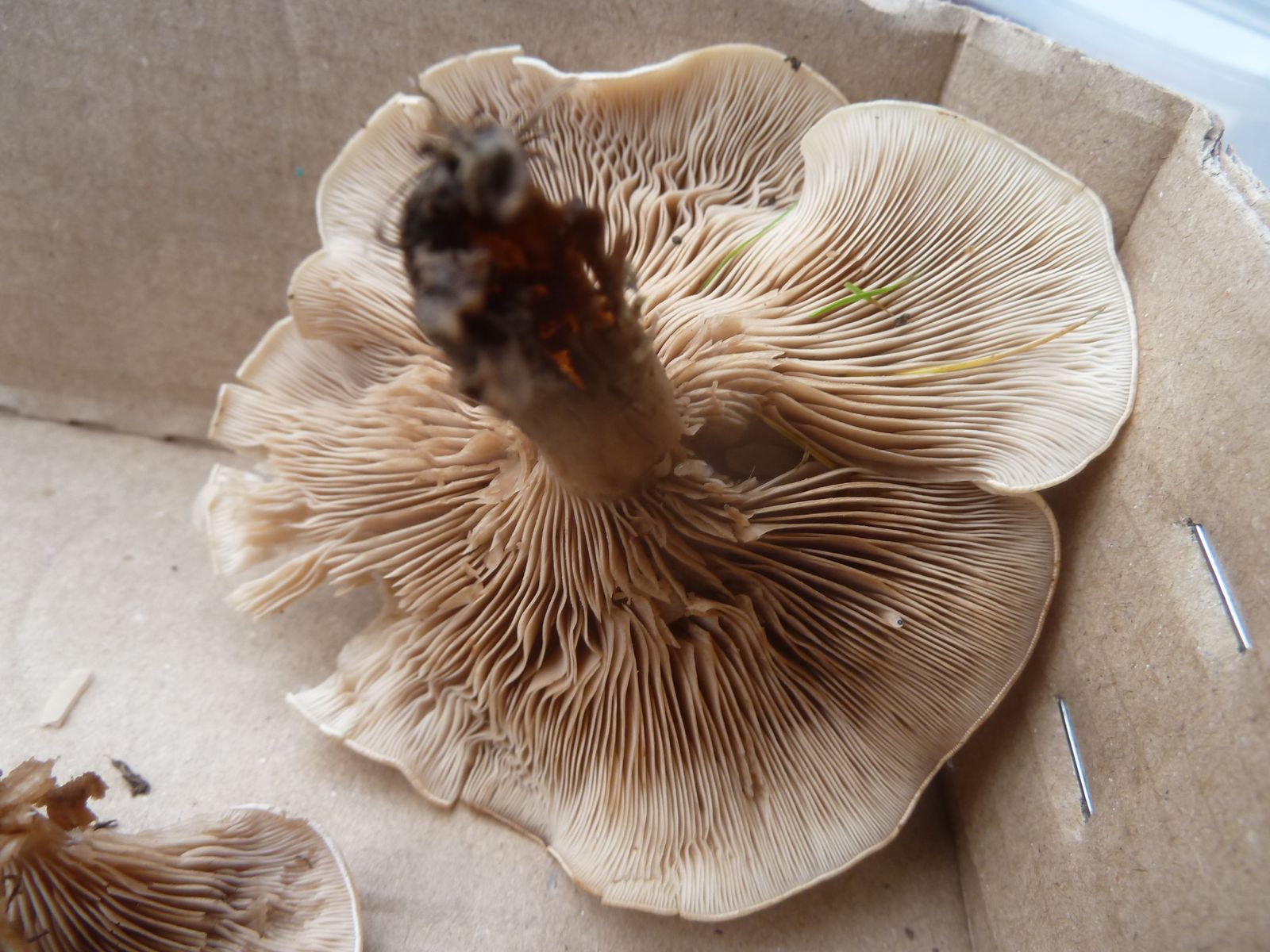 Die zweite an den Rändern und auf Druck leicht orangebräunlich verfärbende Kollektion fällt vor allem durch die lappig-unregelmäßige Hutform , dünneren Stiel und Habitus auf. Ist das überhaupt Lepista?