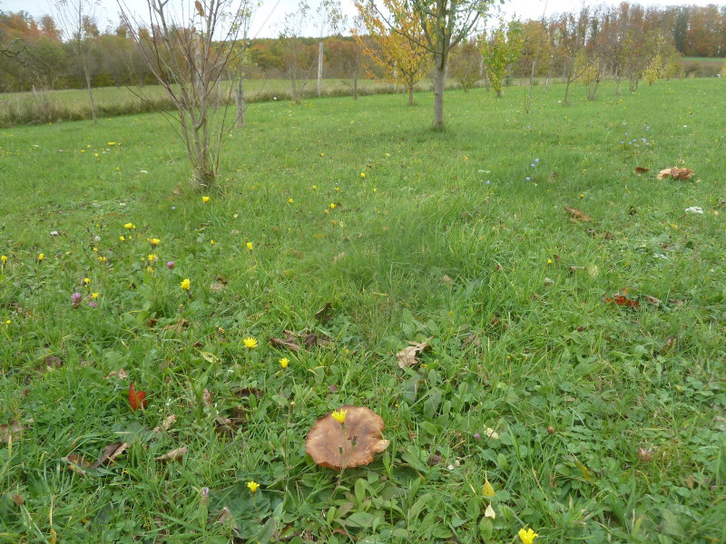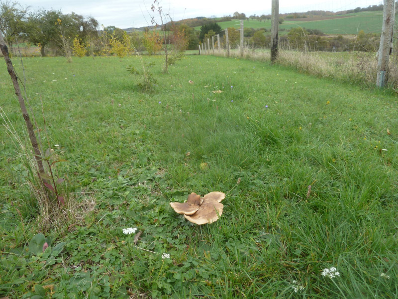 Die erste der heutigen Kollektion wächst zwischen Pfirsich und Flaum-Eiche, die zweite in einer Streuobst-Ecke (also nur Rosaceaen). Bei beiden Funden habe ich den Bereich unter den Lamellen angeschaut und weißes (!) Sporenpulver entdeckt.