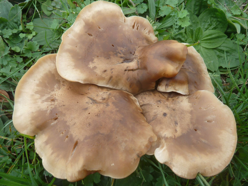 Die zweite an den Rändern und auf Druck leicht orangebräunlich verfärbende Kollektion fällt vor allem durch die lappig-unregelmäßige Hutform , dünneren Stiel und Habitus auf. Ist das überhaupt Lepista?