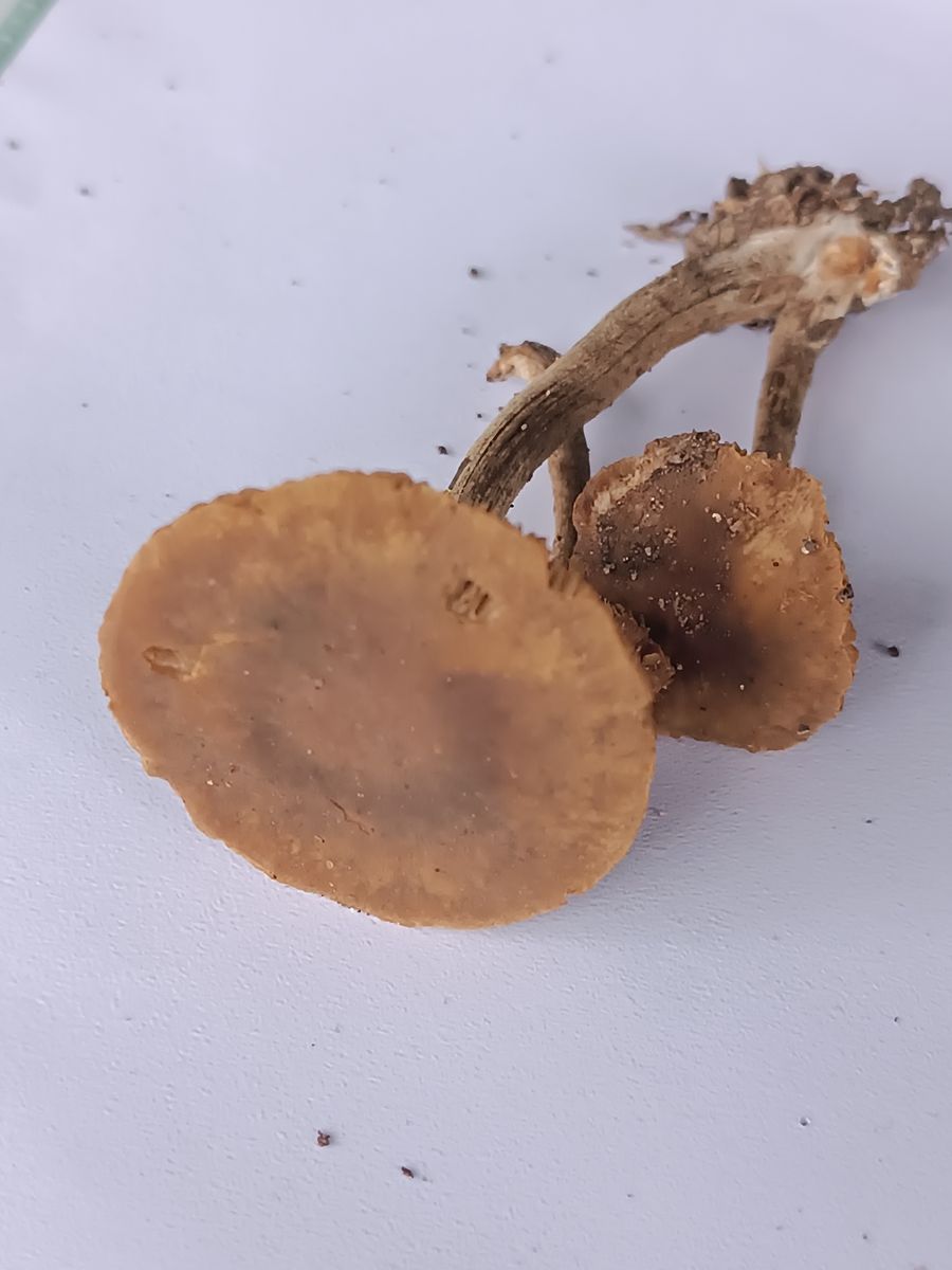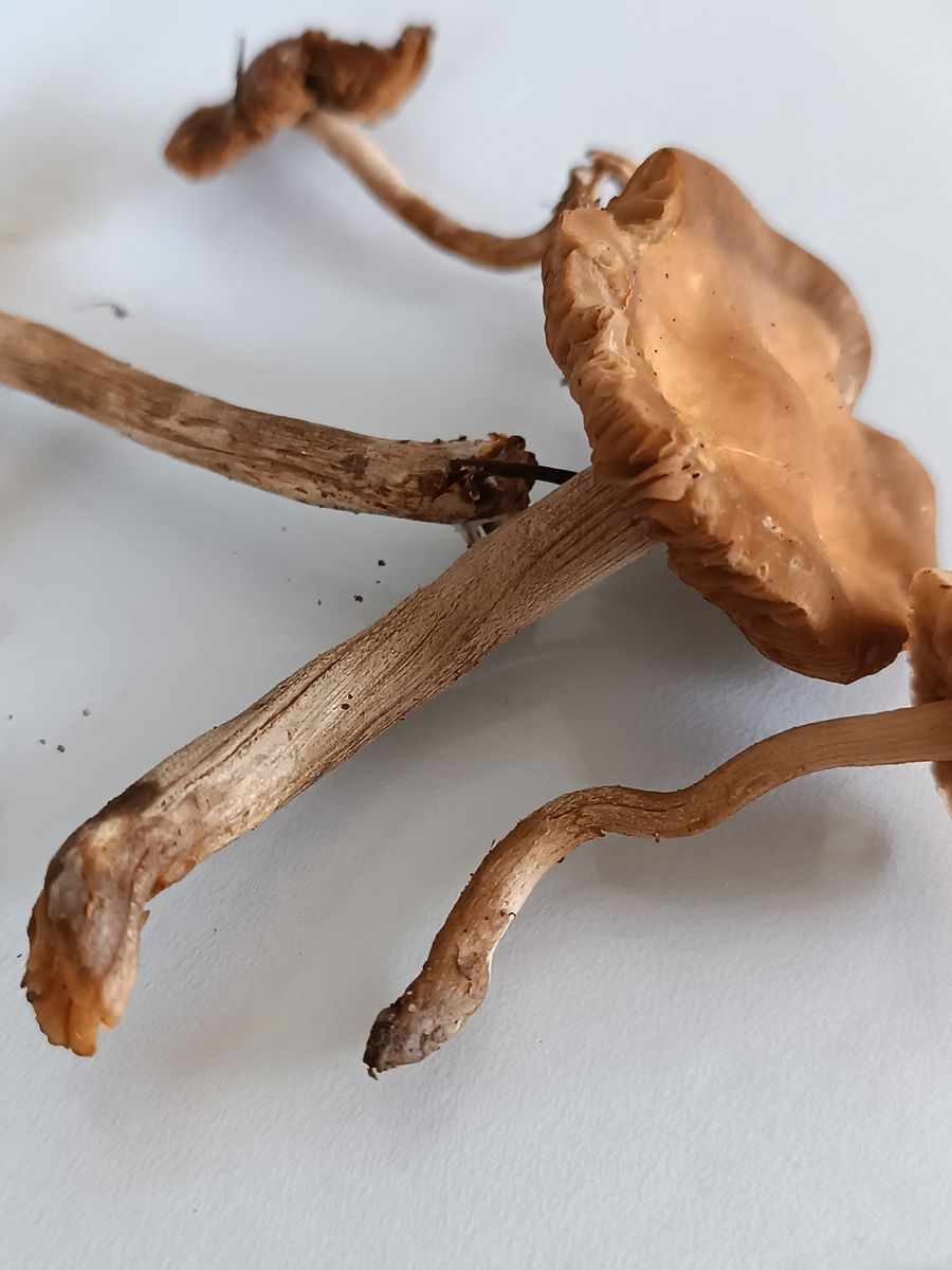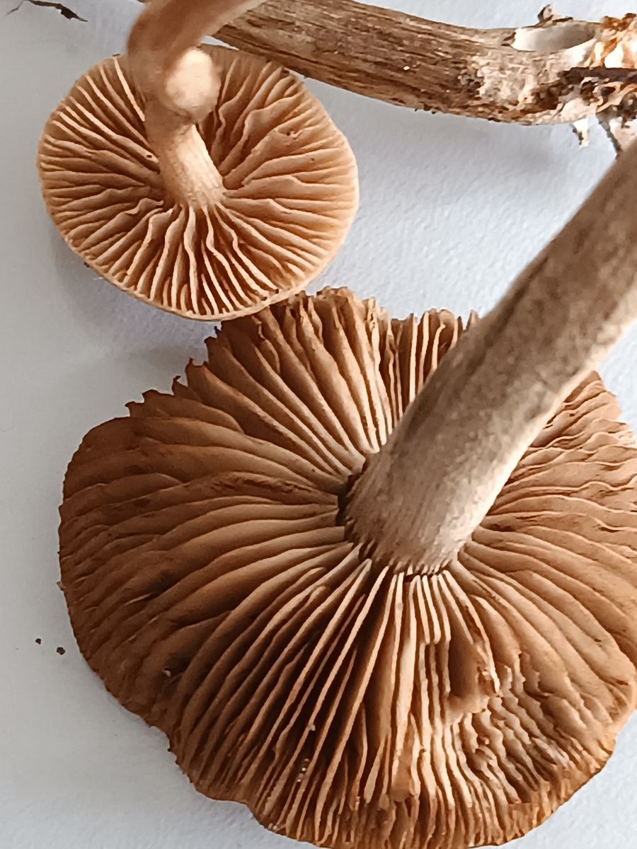 - Lamellen: : braun, angewachsen, mit Zwischenlamellen, (weiße Bereifung konnte ich nicht erkennen, wie sie bei Tubaria vorhanden sein sollte (?) )