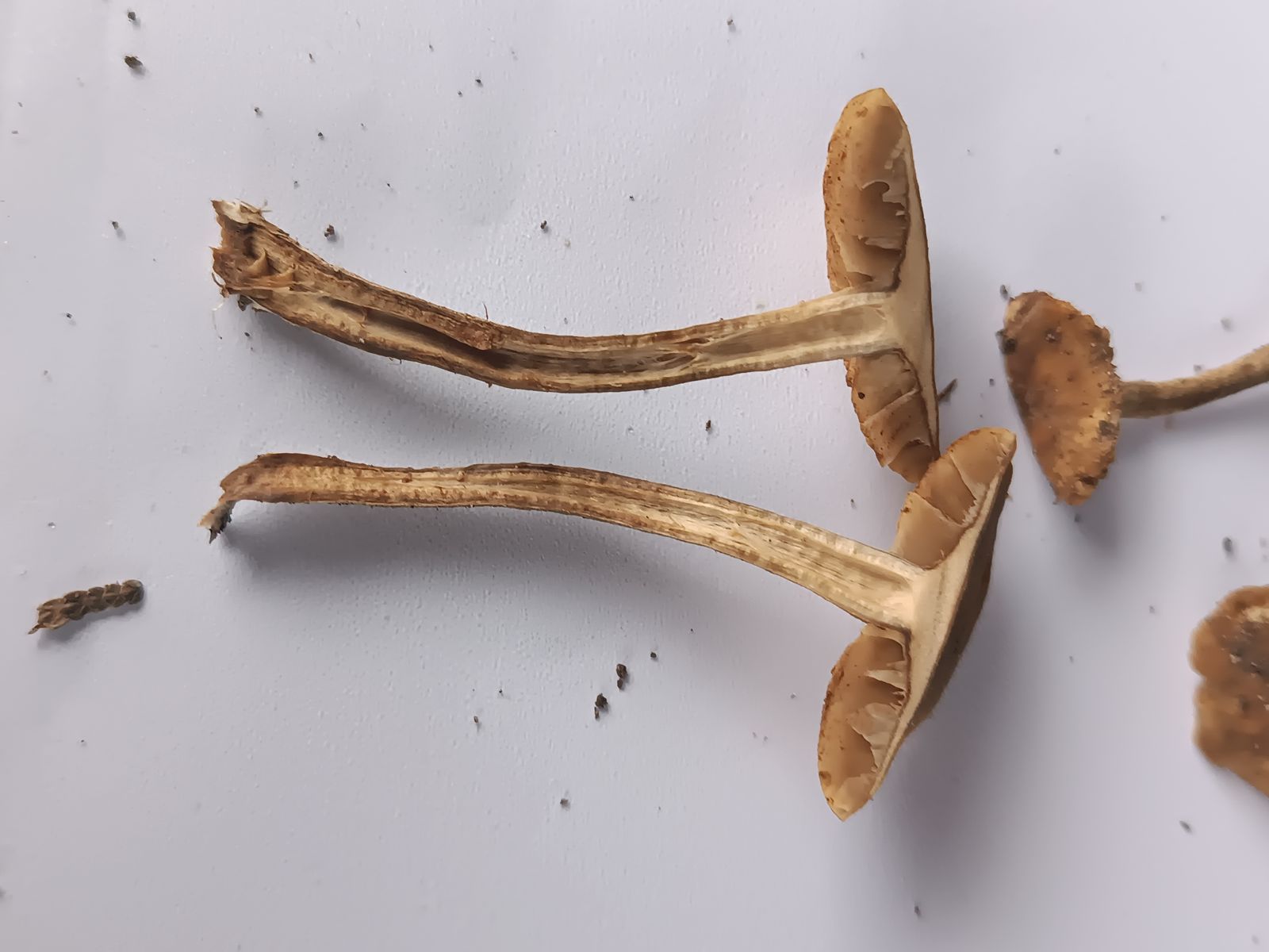 - Stiel: deutlich längsgerieft, Ringzone oder Velumspuren für mich nicht sichtbar, hohl