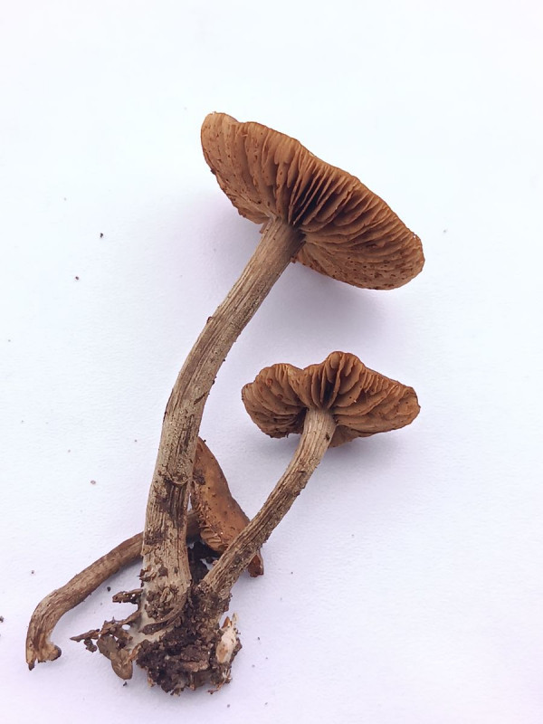 Besonders ins Auge gesprungen ist mir der deutlich längsgeriefte Stiel. Und dieses Merkmal fand ich bei keiner Beschreibung vom Gemeinen Trompetenschnitzling / Tubaria furfuracea, an den ich zunächst dachte.