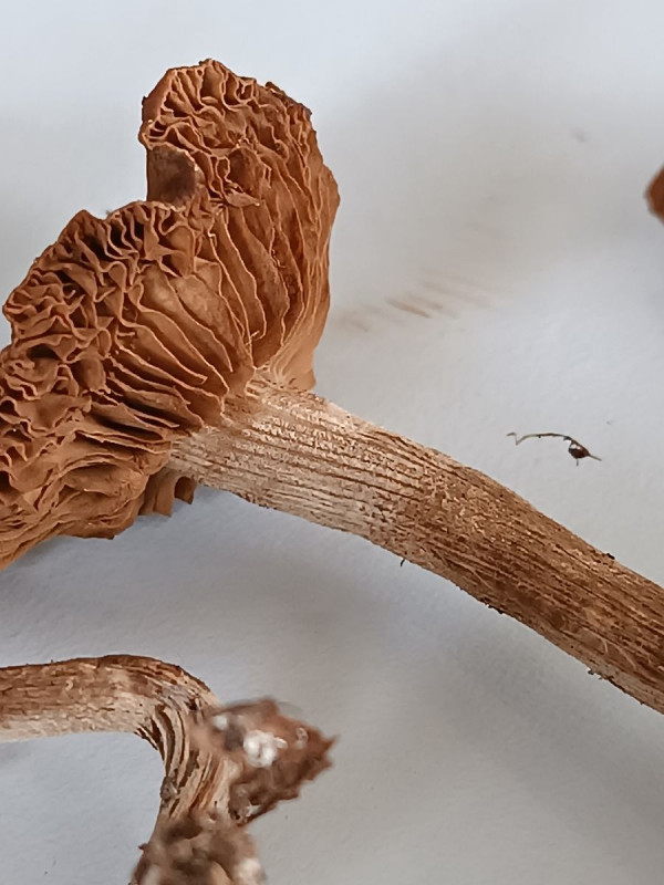 - Lamellen: : braun, angewachsen, mit Zwischenlamellen, (weiße Bereifung konnte ich nicht erkennen, wie sie bei Tubaria vorhanden sein sollte (?) )