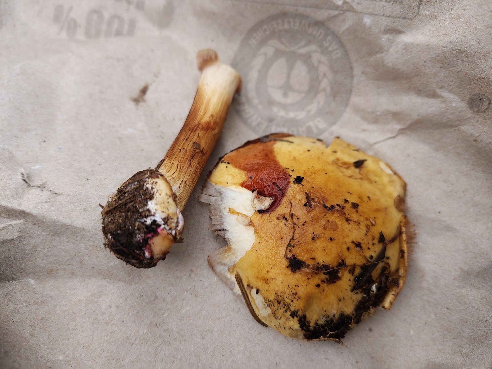 Ich konnte keinen Aschenbecher riechen, für mich deutlich nach Rettich mit kräftiger muffig-erdiger Komponente. Mir gefällt die Hutfarbe leider auch so gar nicht für pseudoglaucopus, da kein oliv und sehr gelb. Ich hab die Bilder nochmal etwas kleiner geschnibbelt und für mich haben die wenig Ähnlichkeit mit Hüten junger pseudoglaucopus, die ich letzte Woche ausgiebig begutachten konnte.