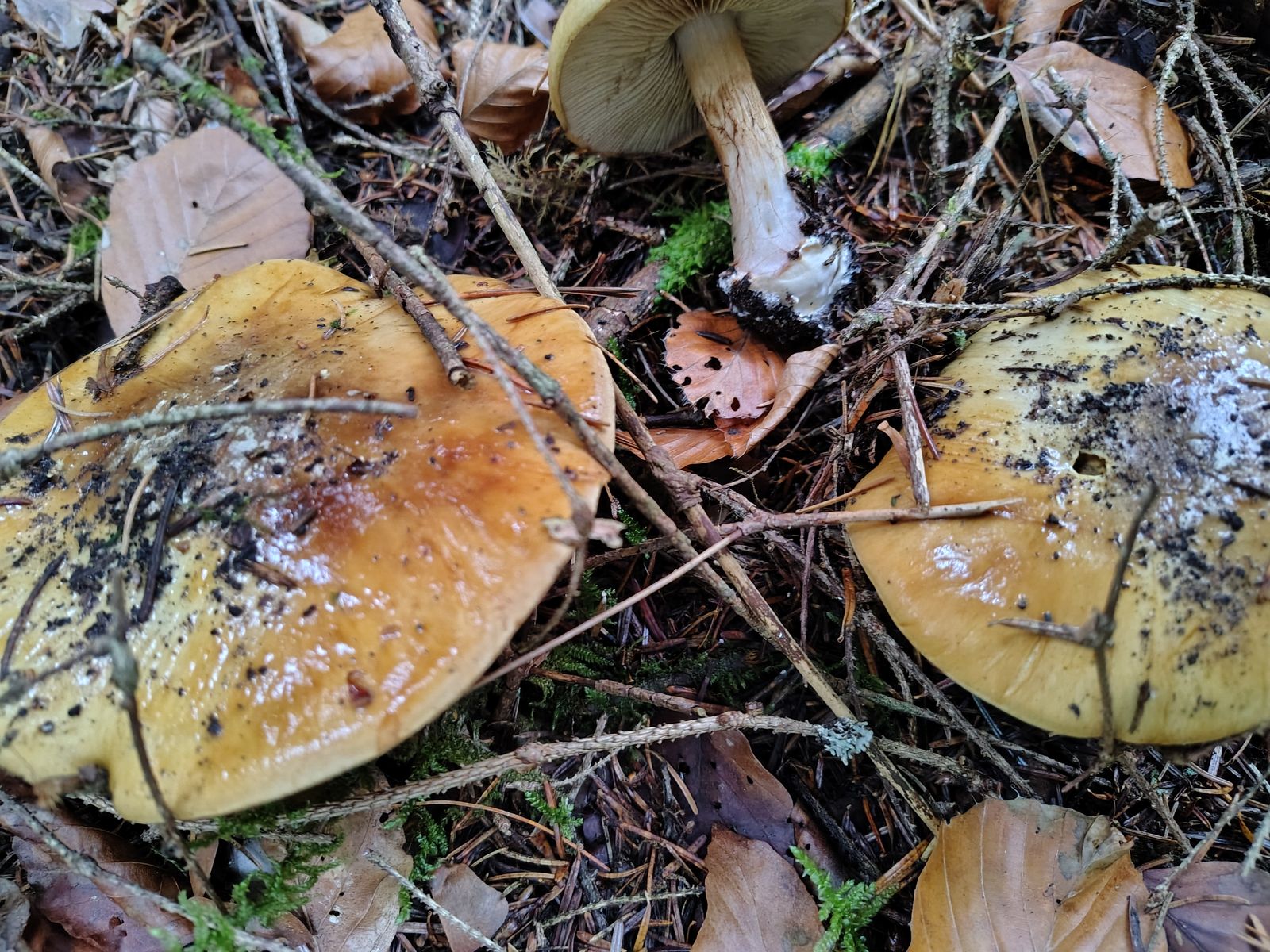 Cortinarius die gelben hatten ein wenig noise bei der Sequenzierung, die ITS stimmt zu 98.61% mit einer Sequenz, die Calonarius flavoaurorus genannt wird, überein. Über die Art finde ich relativ wenig, außer dass sie wohl sehr nahe bei C. pseudoglaucopus steht oder sogar mit diesem Synonym sein soll.