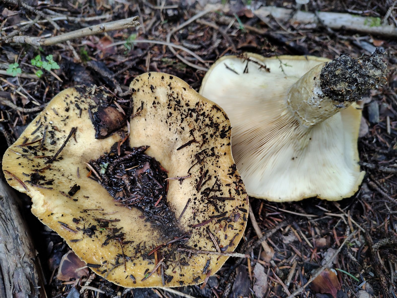 20. Bei Tanne stehen neben vielen Lachsreizkern jetzt oft gewaltige Exemplare von Lactarius intermedius herum