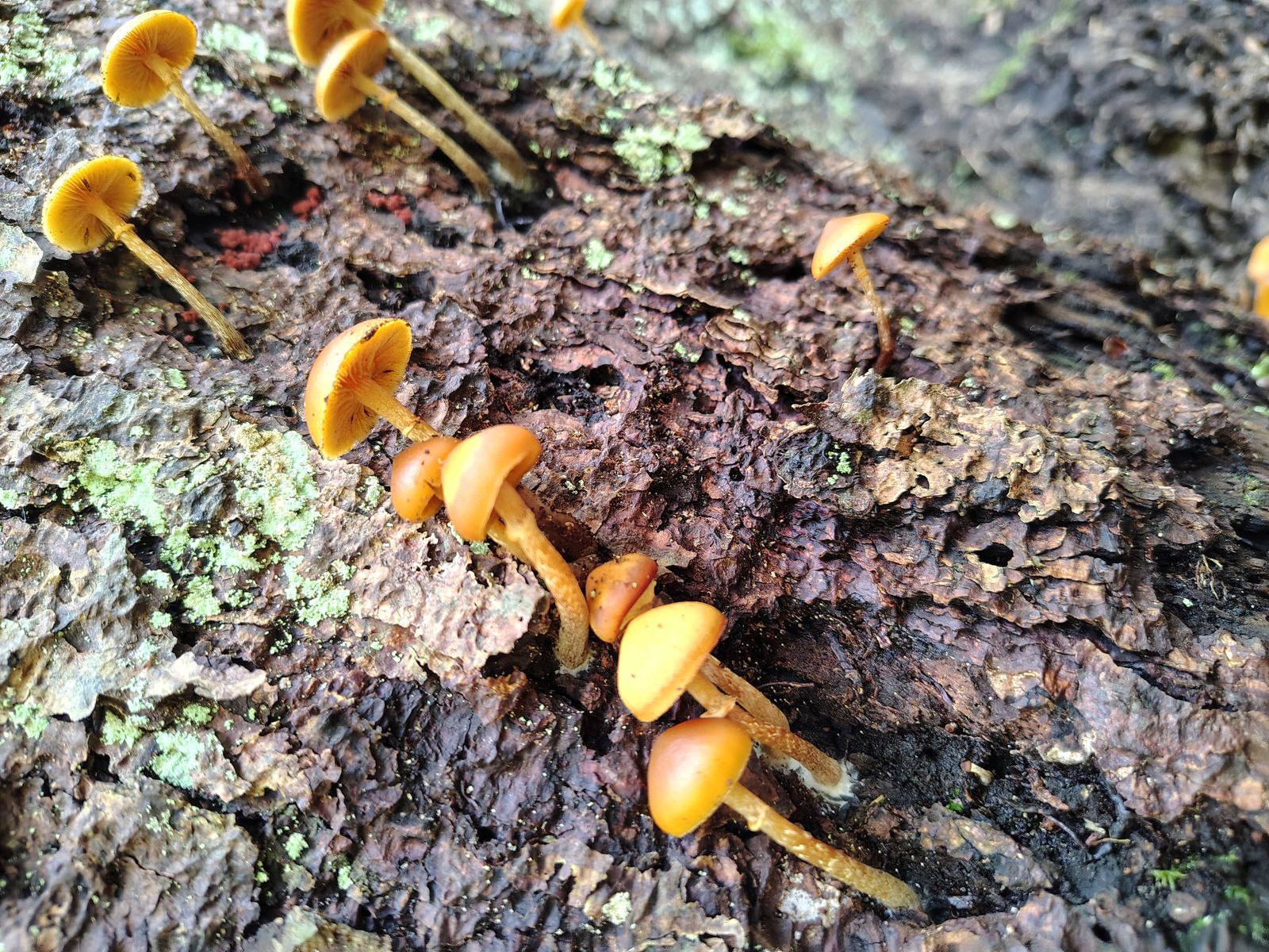 1. Der Pilz der gerade noch am häufigsten ganz frisch kommt ist Hygrophorus abieticola, ein schöner oranger Farbtupfer im Herbstwald