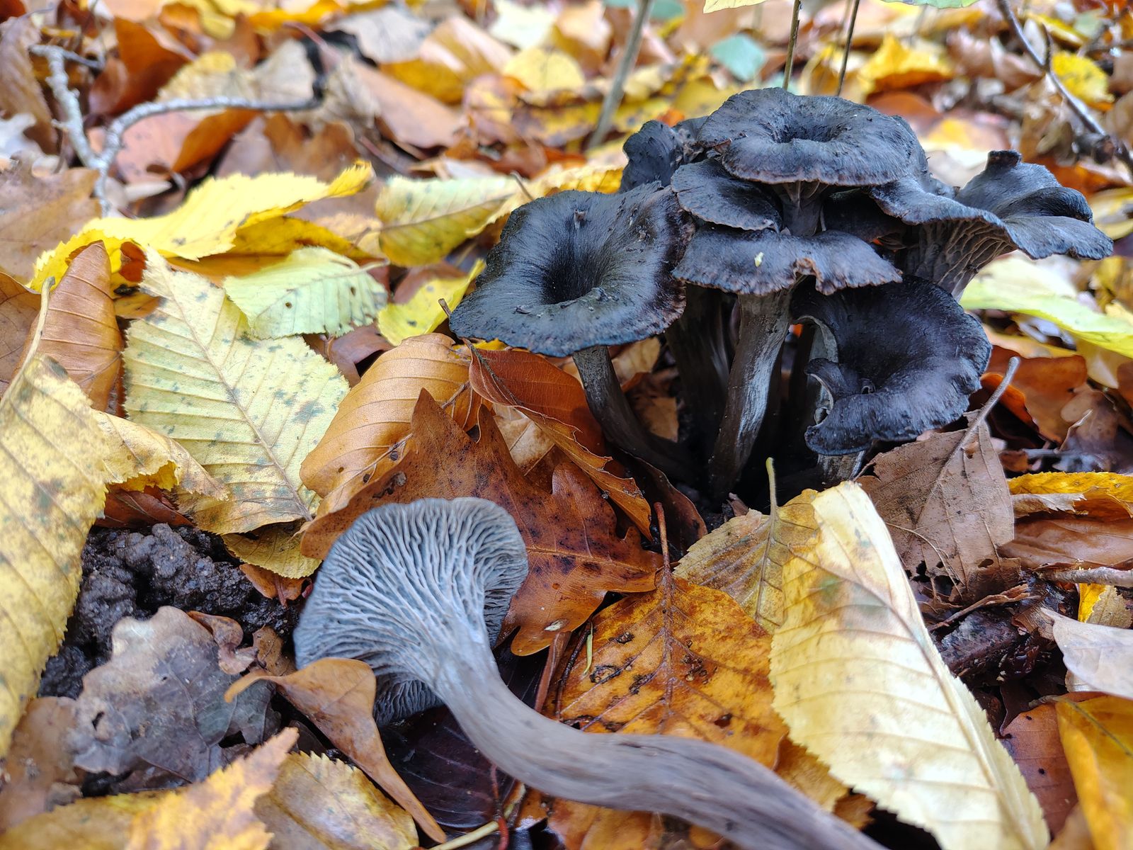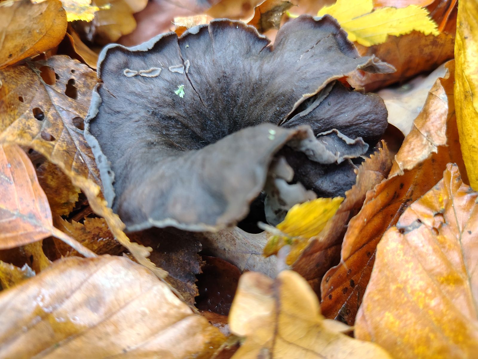 14. Aber natürlich gibt es nicht nur Cortinarien. Es gibt noch seeeehr viele Trompetenpfifferlinge, die jetzt auch eine Größe haben bei der sich das Sammeln lohnt