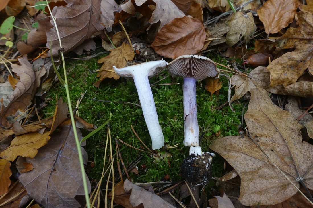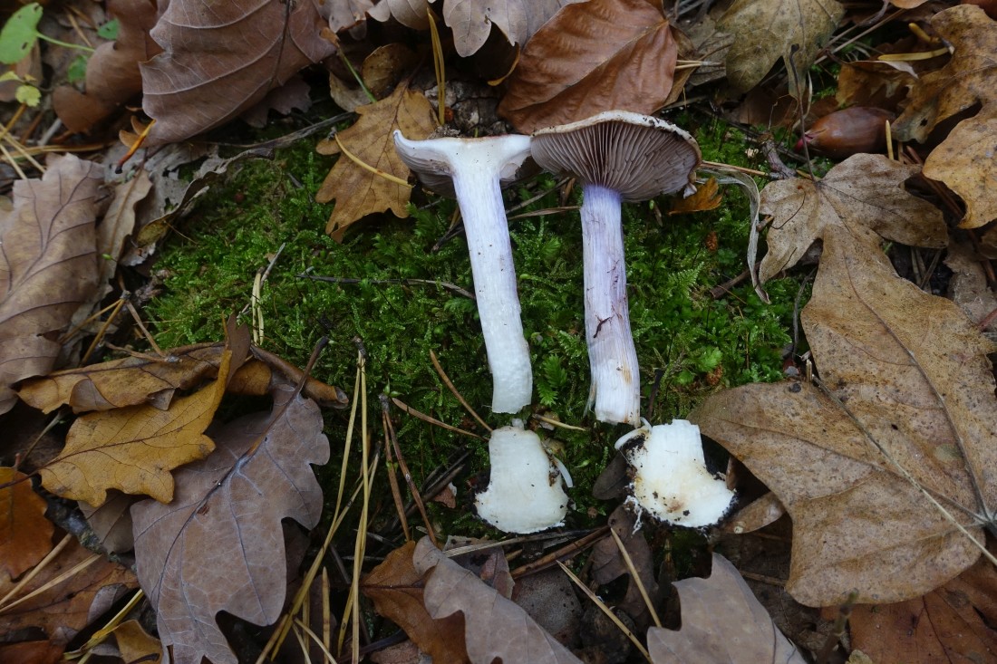 Gefunden auf Muschelkalk in einem Eichen-betonten Laubwald, in unmittelbarer Nähe aber auch diverse Kiefern, Espen, Birken und womöglich weitere Laubbäume. In direkter Nachbarschaft fanden sich Schwarze Korkstachelinge, Cortinarius sodagnitus, Hygrophorus discoxanthus, Hygrophorus latitabundus oder Lactarius deliciosus.