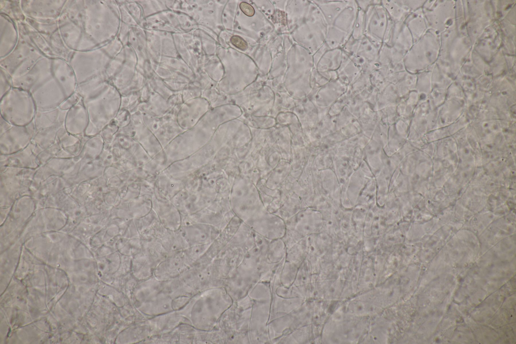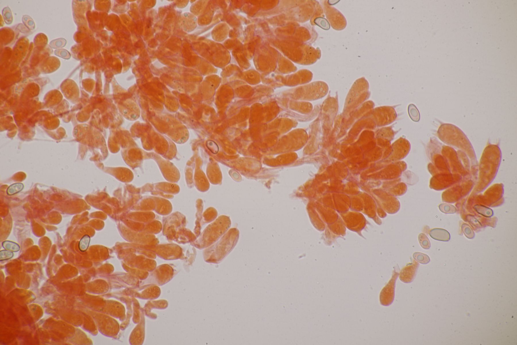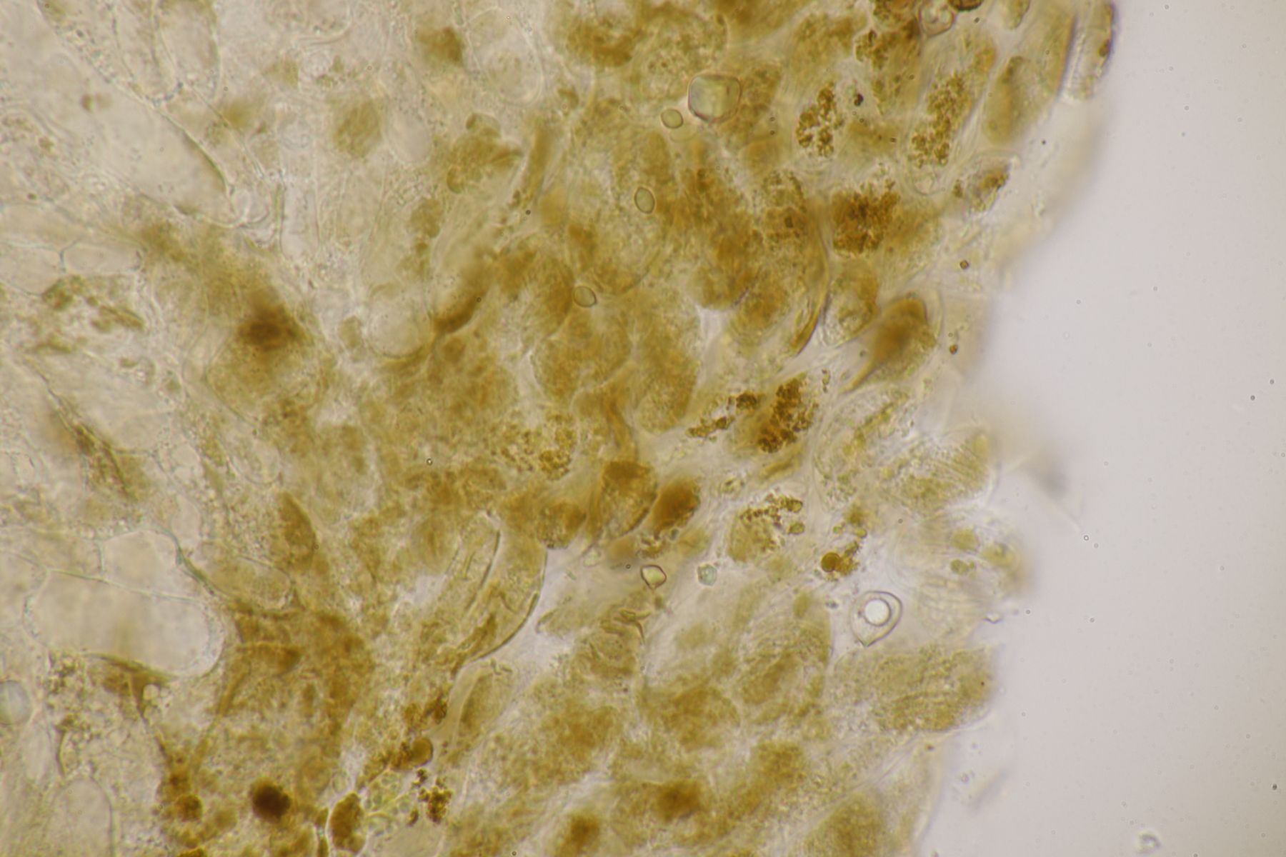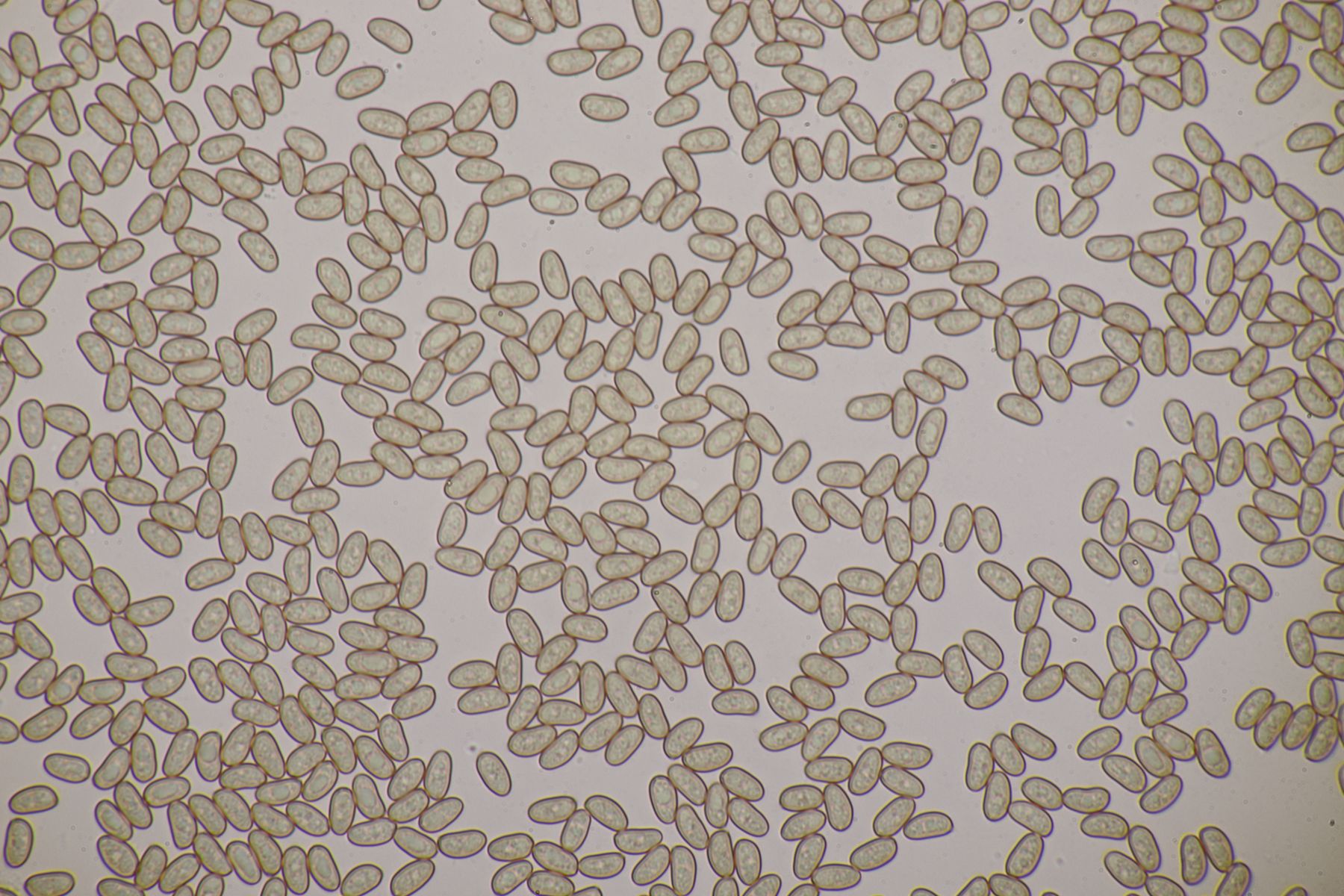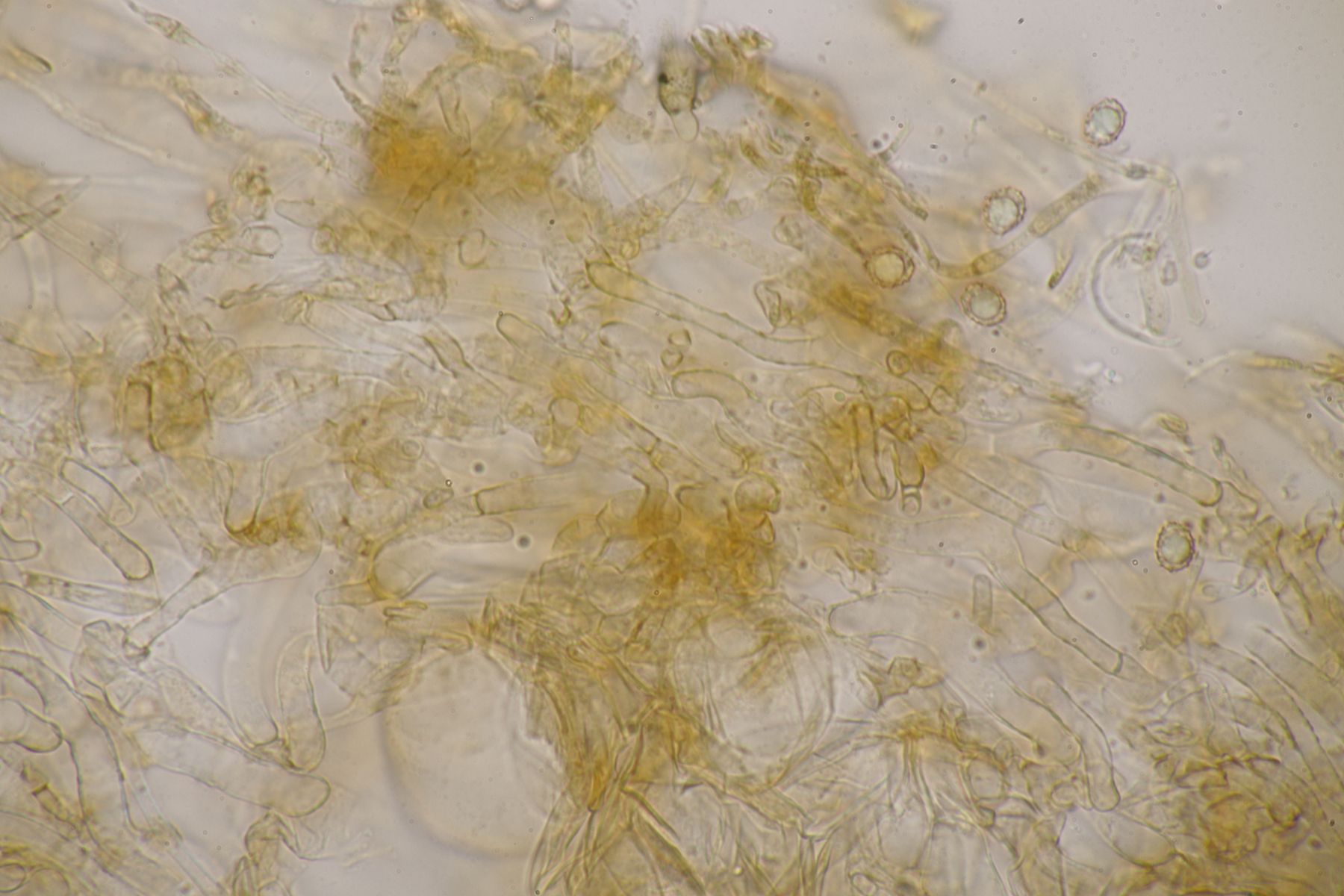 8. Eine Cyanula, die auf der Fläche eines ehemaligen Fischteichs wächst. Die Fläche ist jetzt nur noch im Frühling überflutet und den Rest des Jahres trockengefallen. Der Boden ist hier nicht super mager, da sich auf dem Sandboden im Laufe der Zeit auch etwas Teichschlamm abgelagert hat. Sporen messen 10,4±0,8 µm × 7,9±0,5 µm, Q=1,3±0,1; 9,1-11,6 µm × 6,8-8,8 µm, Q=1,1-1,4. Die Lamellenschneide ist fertil, eventuell sind dort einige sehr schmale Cheilozystiden - das könnten aber auch einfach Basidiolen sein.
