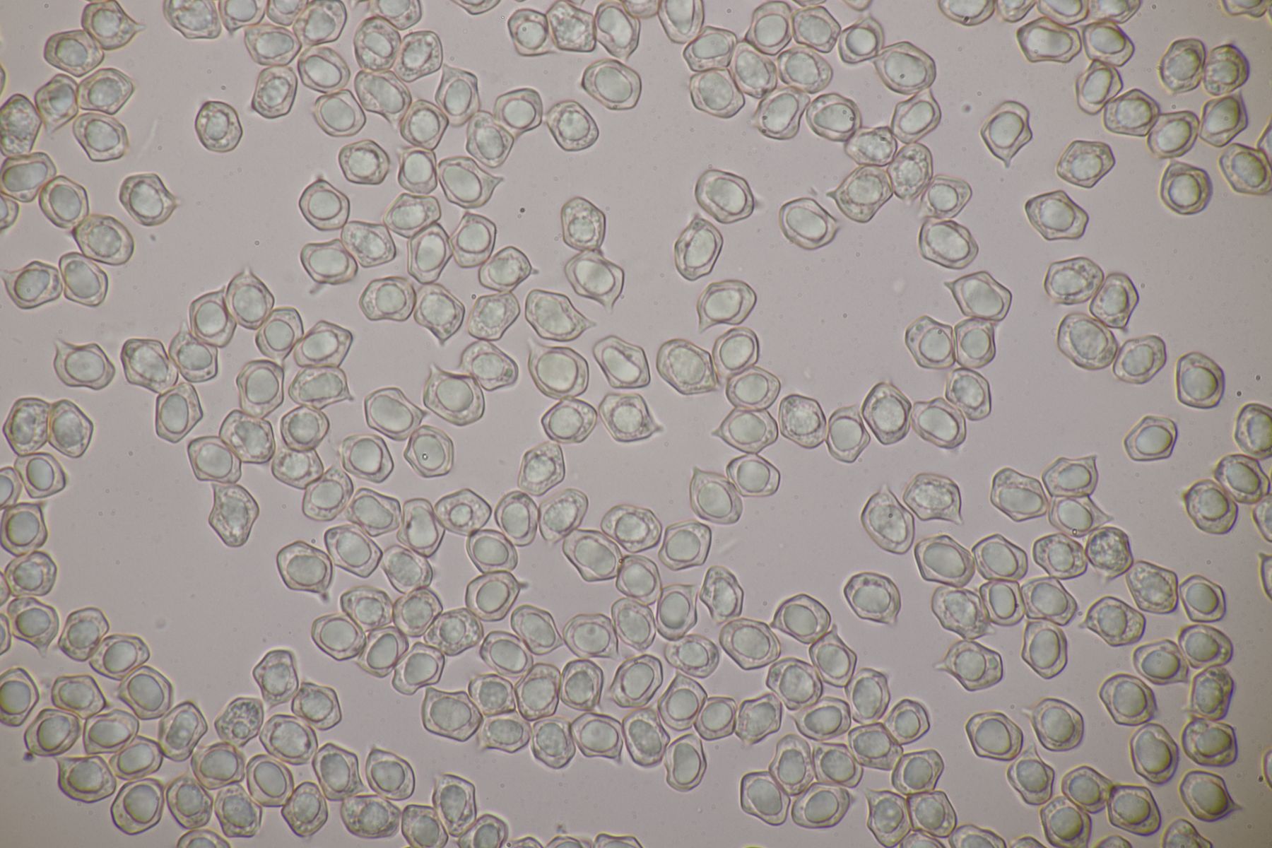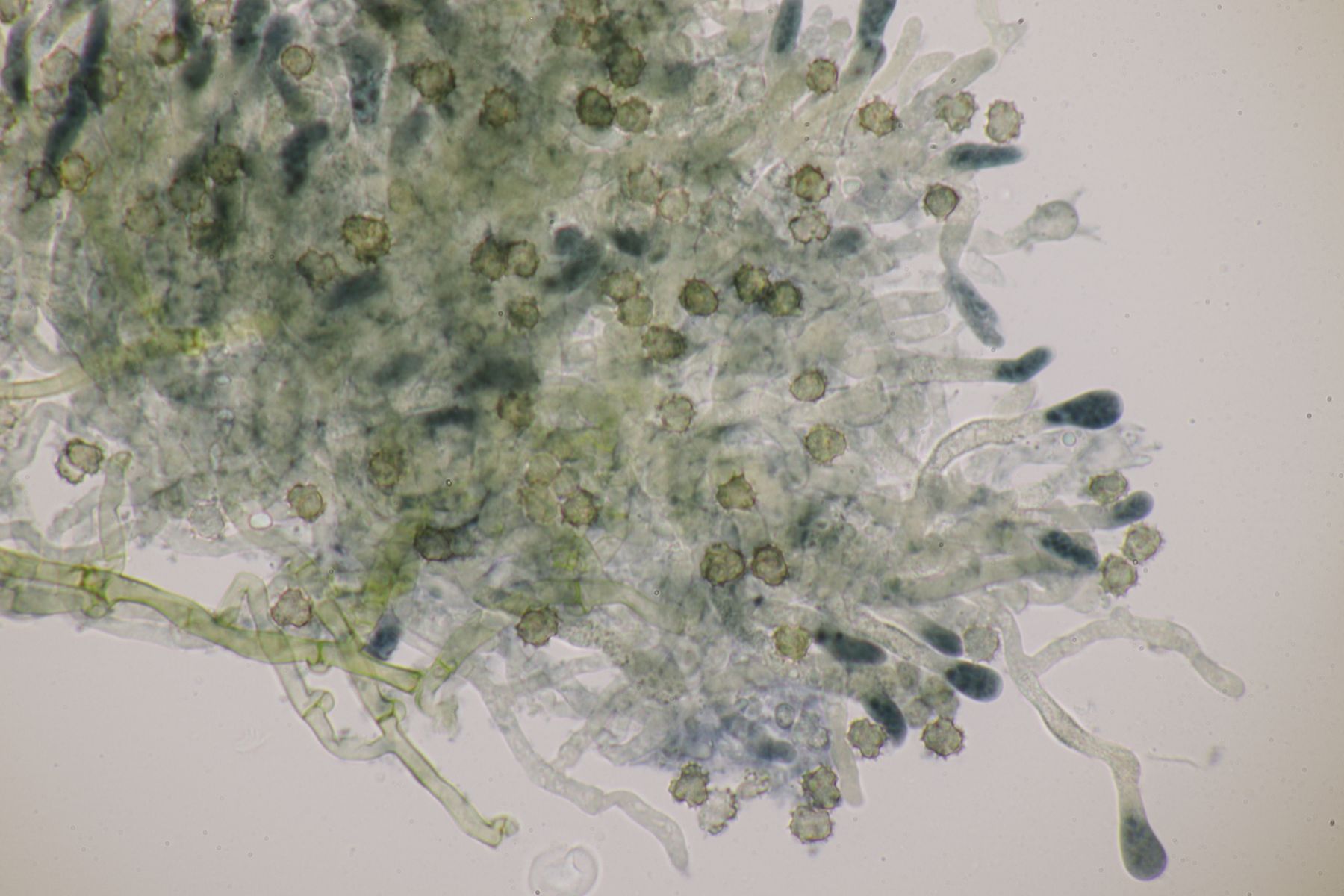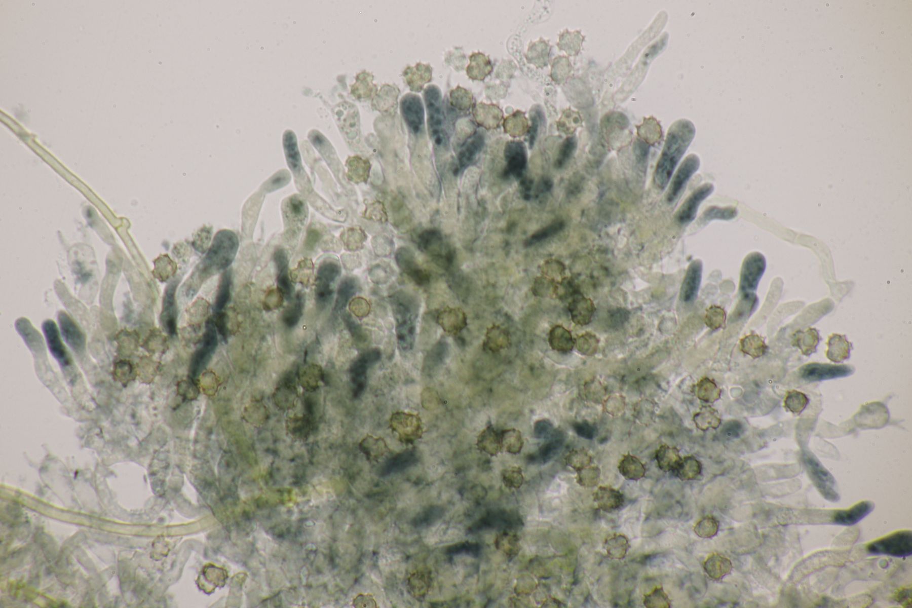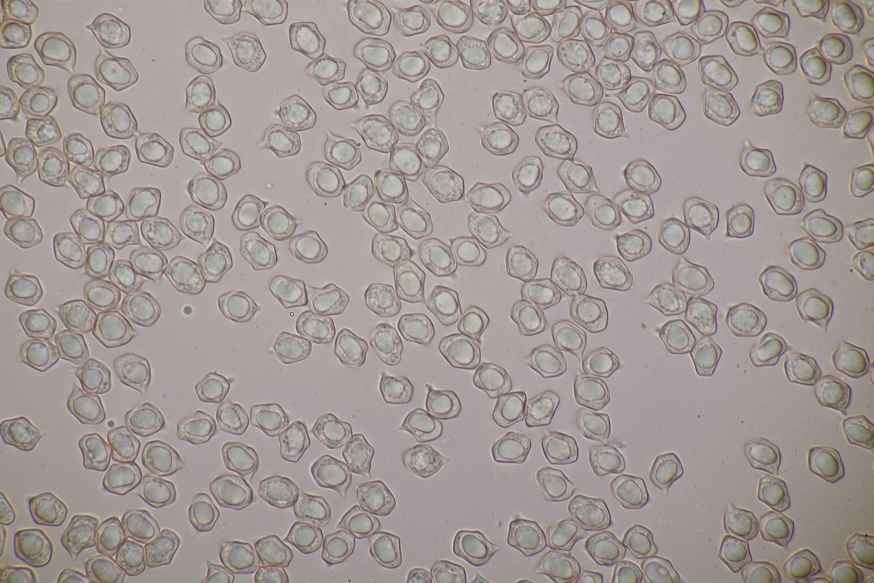 8. Eine Cyanula, die auf der Fläche eines ehemaligen Fischteichs wächst. Die Fläche ist jetzt nur noch im Frühling überflutet und den Rest des Jahres trockengefallen. Der Boden ist hier nicht super mager, da sich auf dem Sandboden im Laufe der Zeit auch etwas Teichschlamm abgelagert hat. Sporen messen 10,4±0,8 µm × 7,9±0,5 µm, Q=1,3±0,1; 9,1-11,6 µm × 6,8-8,8 µm, Q=1,1-1,4. Die Lamellenschneide ist fertil, eventuell sind dort einige sehr schmale Cheilozystiden - das könnten aber auch einfach Basidiolen sein.