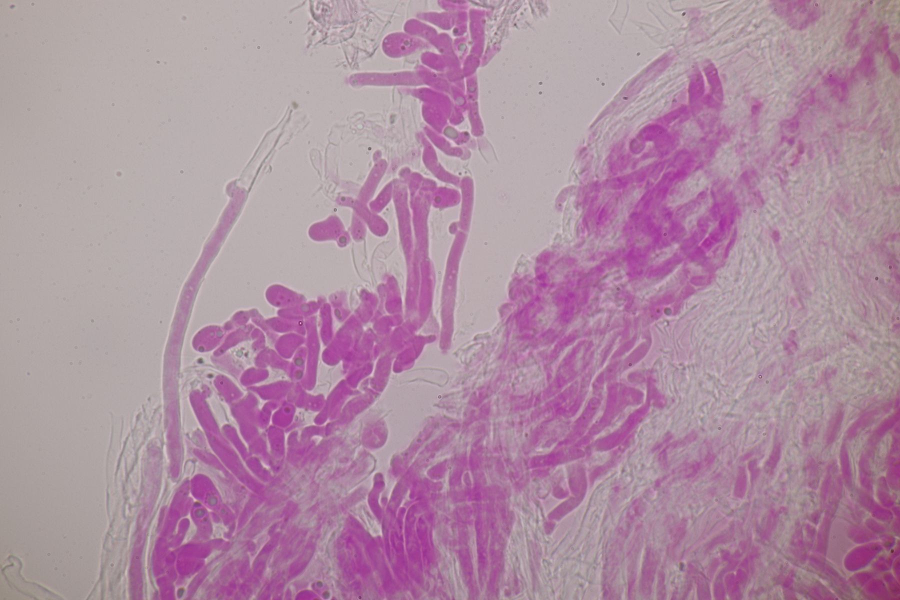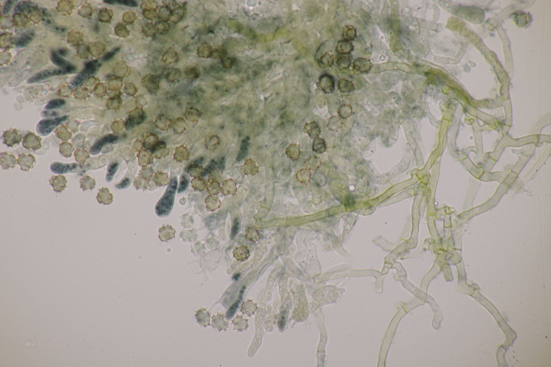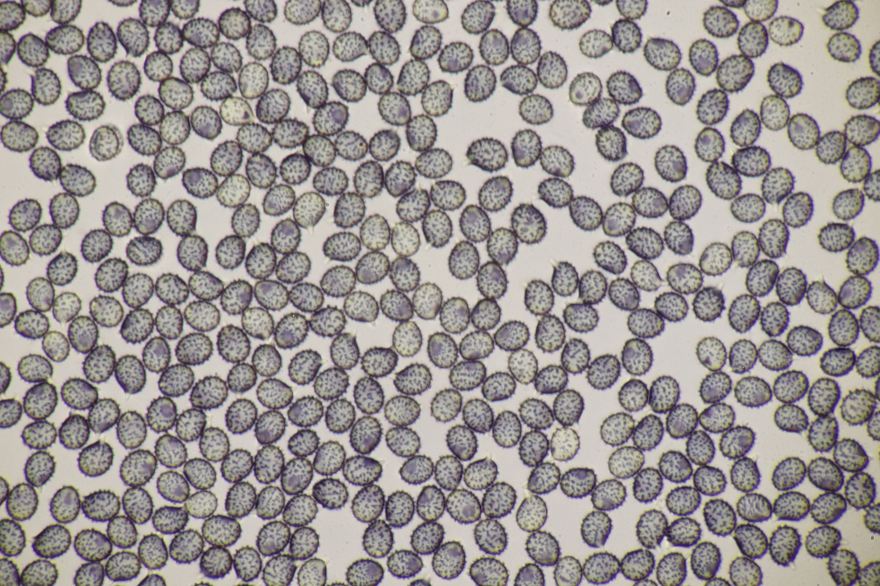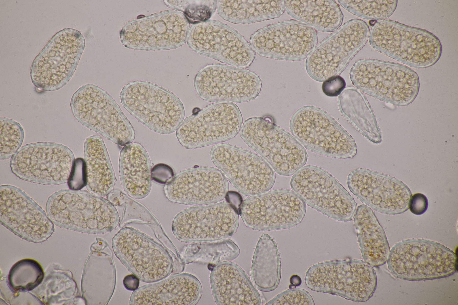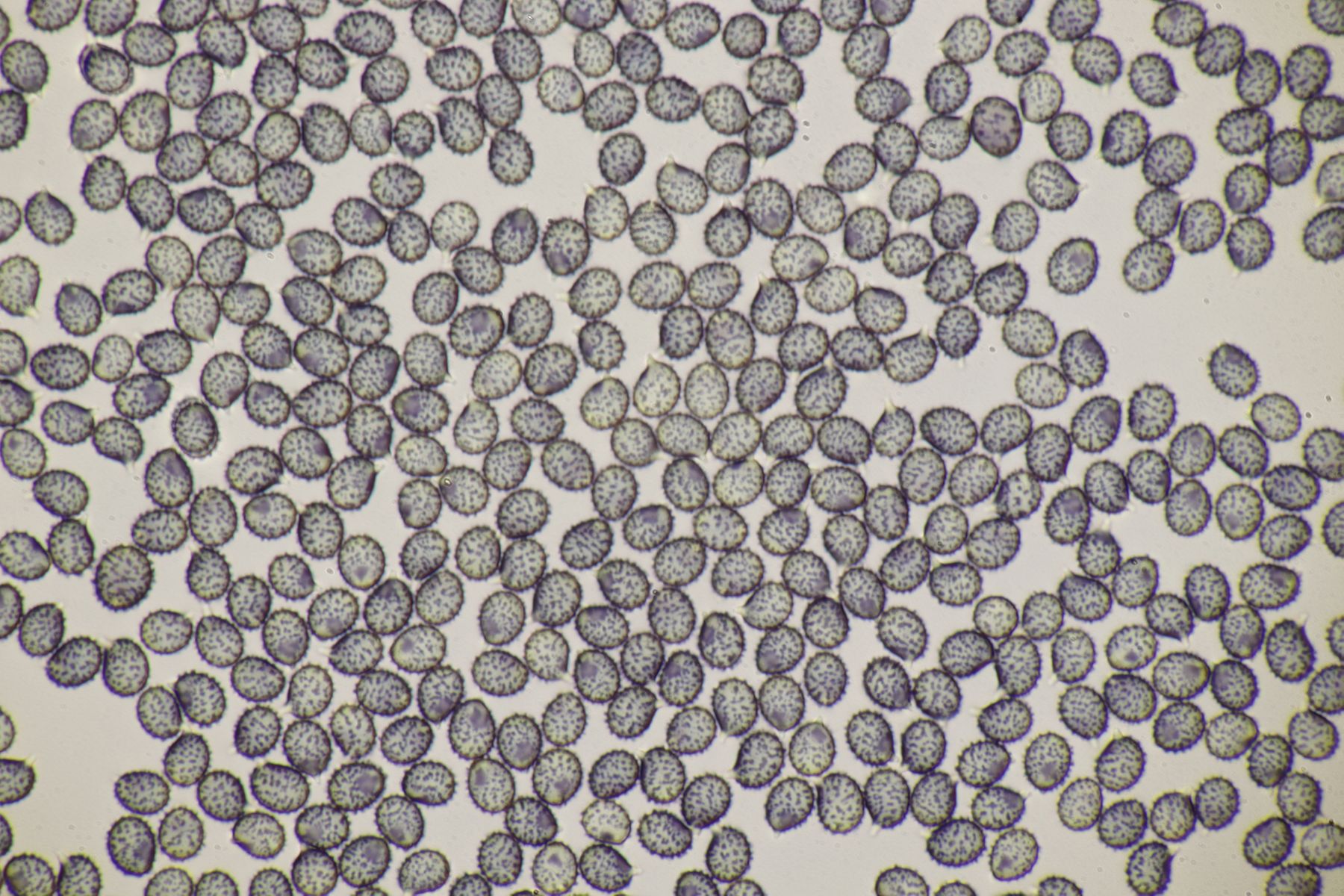 8. Eine Cyanula, die auf der Fläche eines ehemaligen Fischteichs wächst. Die Fläche ist jetzt nur noch im Frühling überflutet und den Rest des Jahres trockengefallen. Der Boden ist hier nicht super mager, da sich auf dem Sandboden im Laufe der Zeit auch etwas Teichschlamm abgelagert hat. Sporen messen 10,4±0,8 µm × 7,9±0,5 µm, Q=1,3±0,1; 9,1-11,6 µm × 6,8-8,8 µm, Q=1,1-1,4. Die Lamellenschneide ist fertil, eventuell sind dort einige sehr schmale Cheilozystiden - das könnten aber auch einfach Basidiolen sein.
