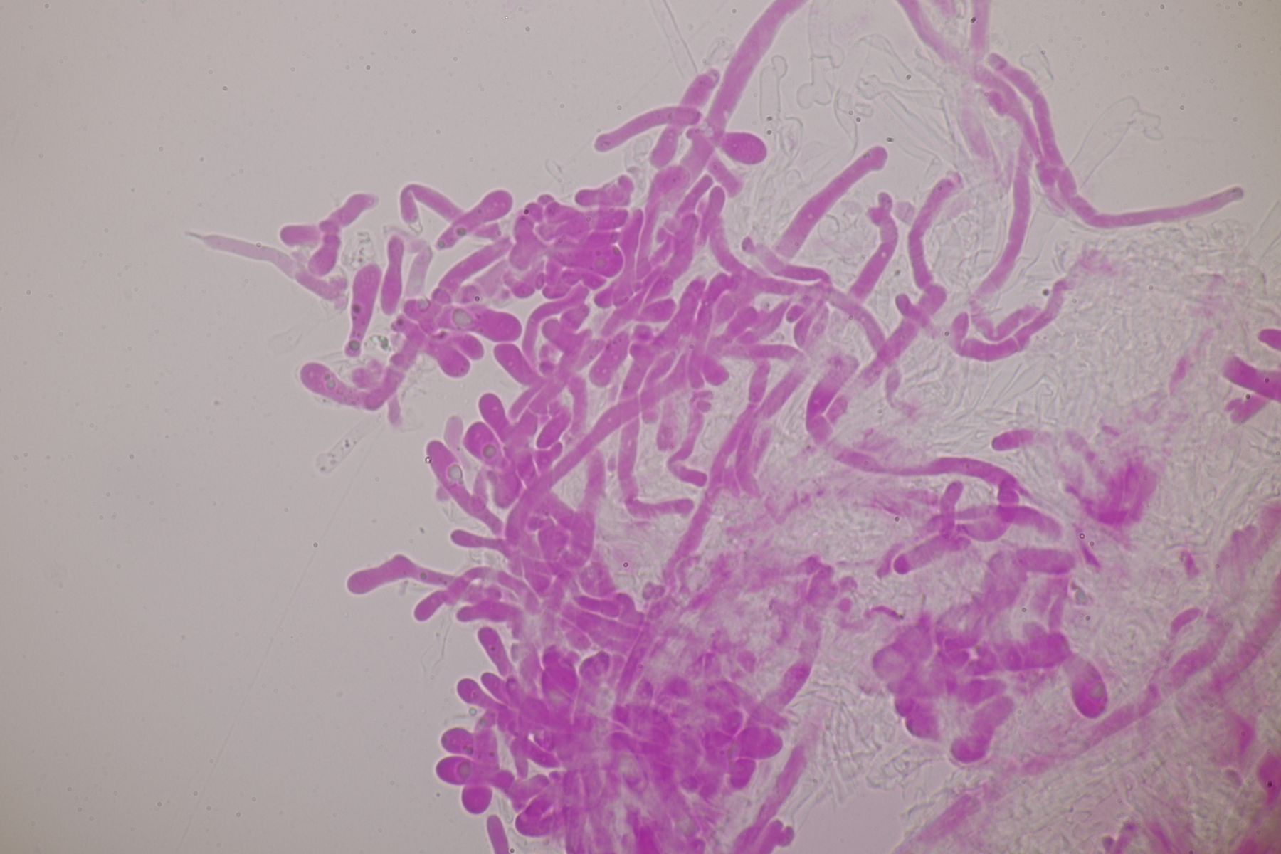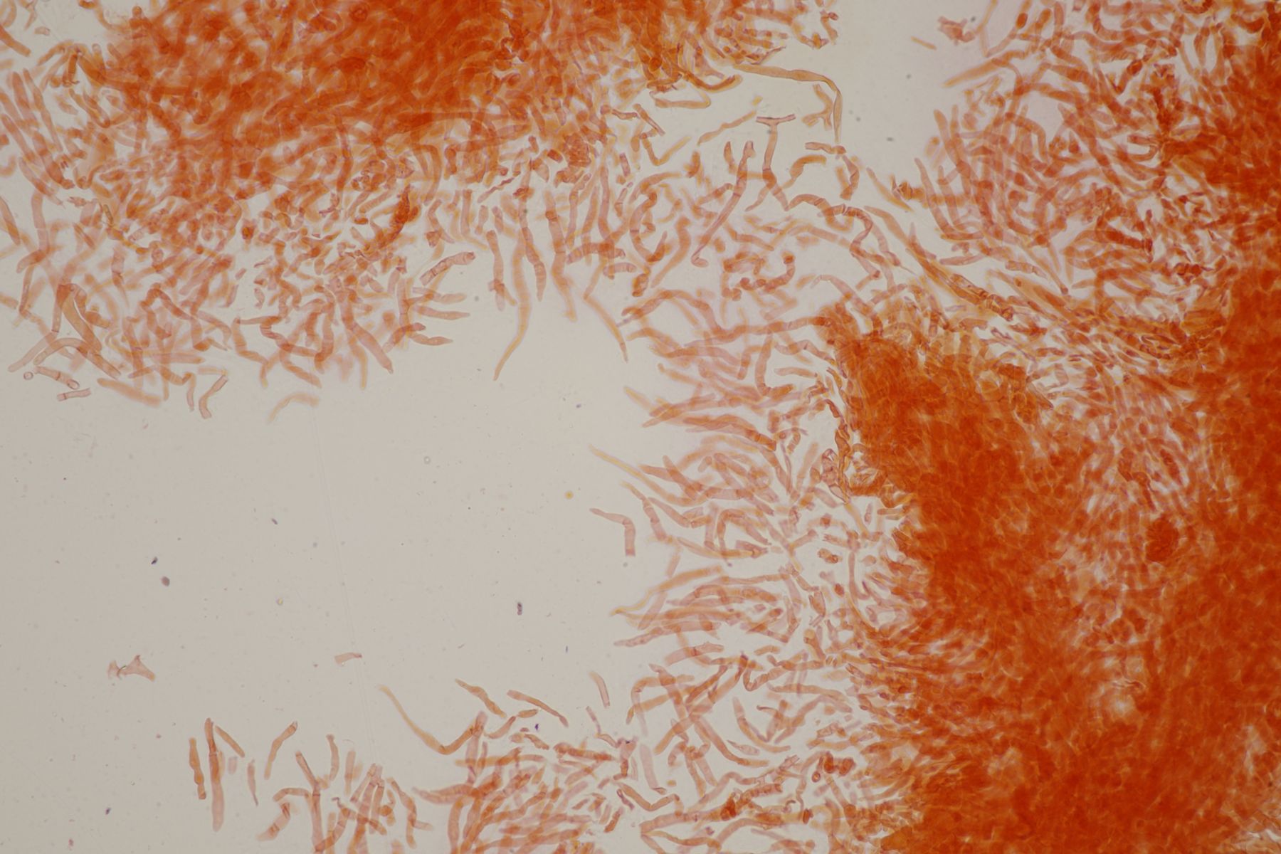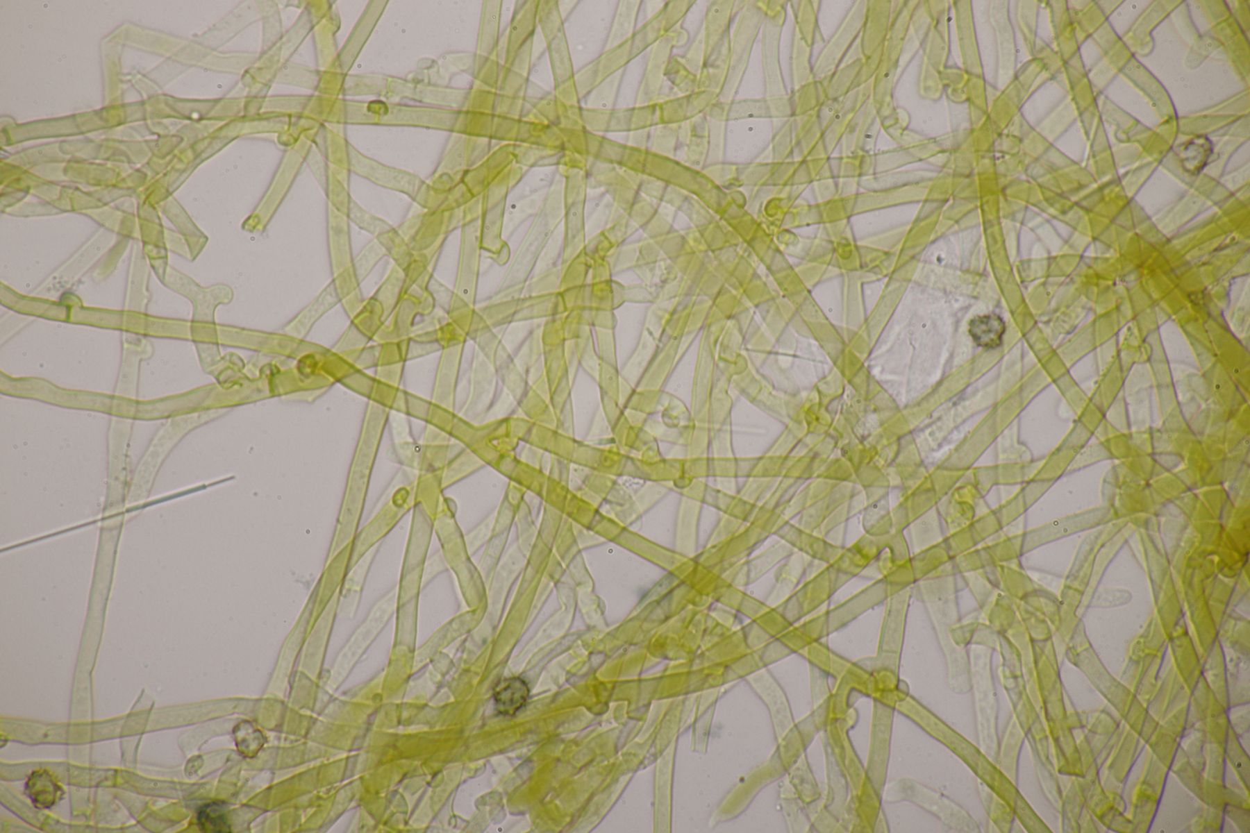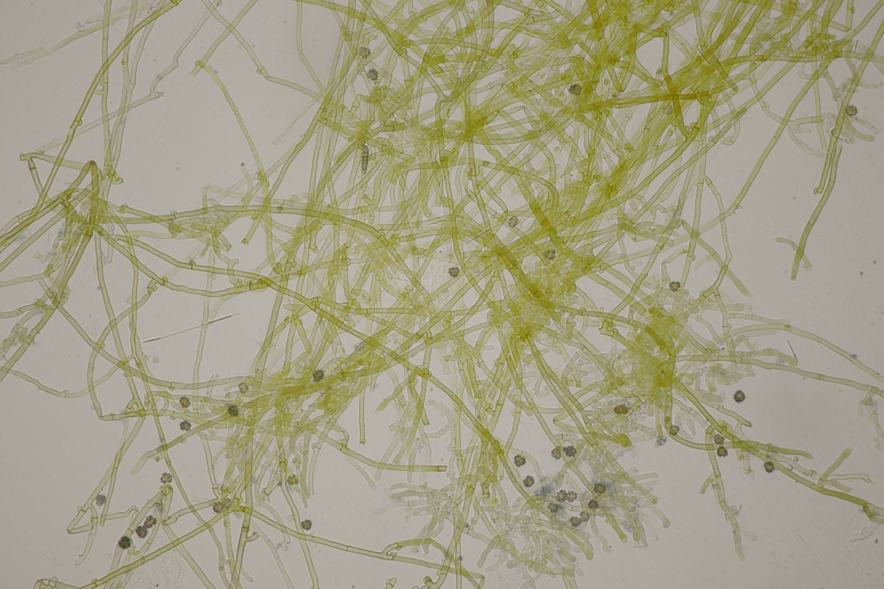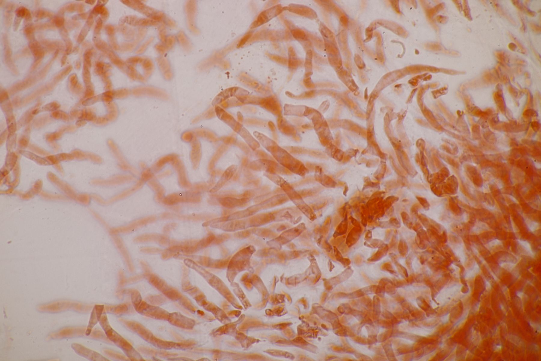 8. Eine Cyanula, die auf der Fläche eines ehemaligen Fischteichs wächst. Die Fläche ist jetzt nur noch im Frühling überflutet und den Rest des Jahres trockengefallen. Der Boden ist hier nicht super mager, da sich auf dem Sandboden im Laufe der Zeit auch etwas Teichschlamm abgelagert hat. Sporen messen 10,4±0,8 µm × 7,9±0,5 µm, Q=1,3±0,1; 9,1-11,6 µm × 6,8-8,8 µm, Q=1,1-1,4. Die Lamellenschneide ist fertil, eventuell sind dort einige sehr schmale Cheilozystiden - das könnten aber auch einfach Basidiolen sein.