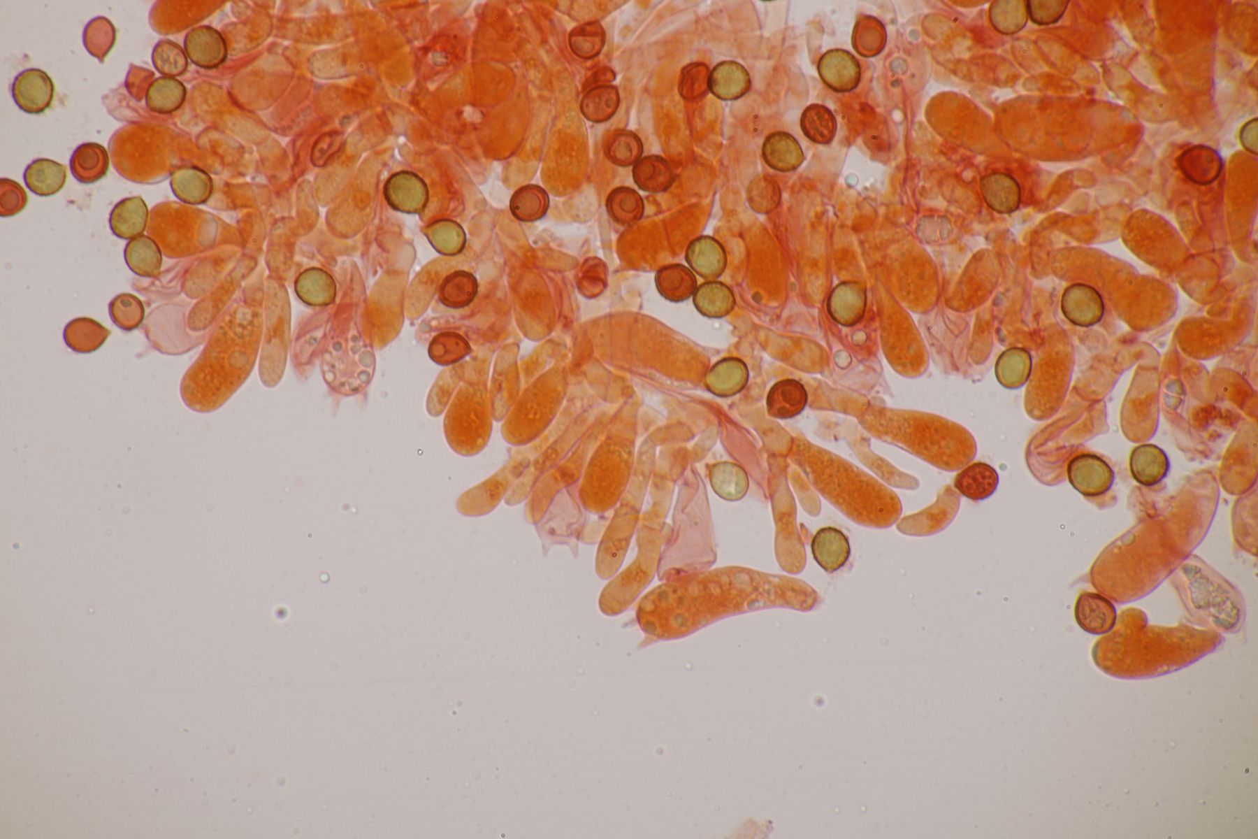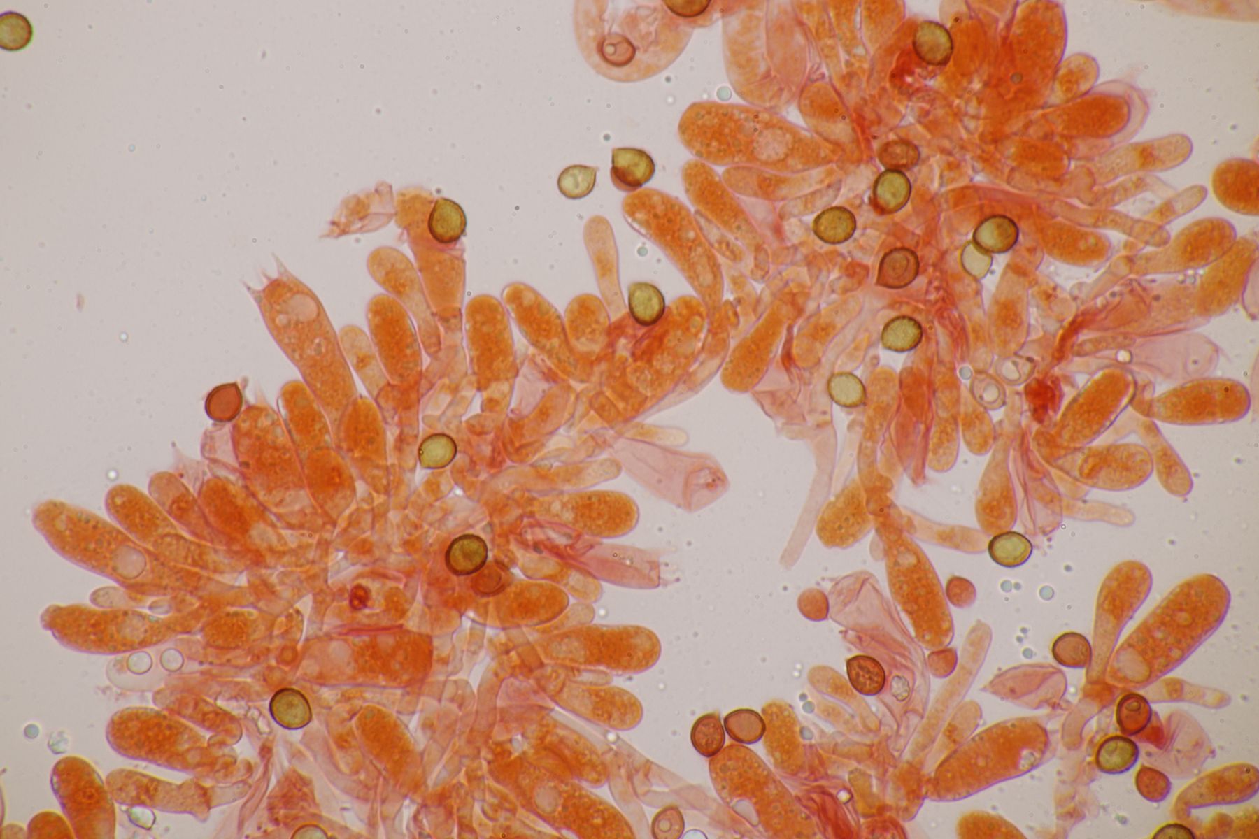 11. Cortinarien-Bestimmung kann auch einfach sein: Ein Myxacium mit subglobosen Sporen und ockerfarbenem Hut, also C. delibutus