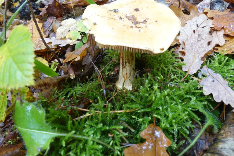 P.S.: Wie so oft bei Pilzen mit gelbgrünlicher Farbe gibt meine Kamera die Farben zu blass und zu wenig grünlich wieder; auch wenn das hier nicht ganz so krass ausgeprägt ist wie bei C.citrinus oder Hypholoma fasciculare.