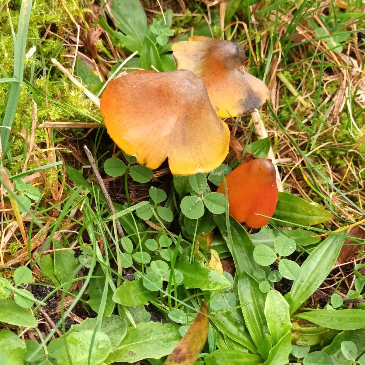 Es sollte eine schwärzender Saftling sein ? Weil der eine Hut diesen schwarzen Streifen auf dem Hut hat.