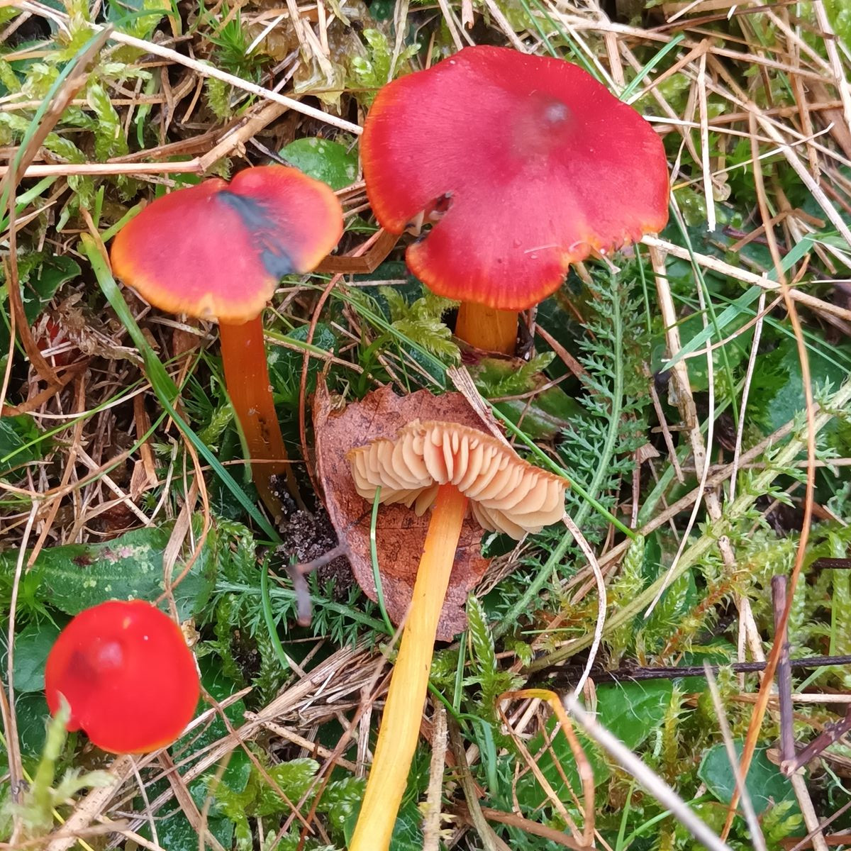 Es sollte eine schwärzender Saftling sein ? Weil der eine Hut diesen schwarzen Streifen auf dem Hut hat.