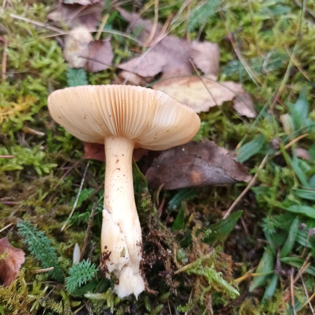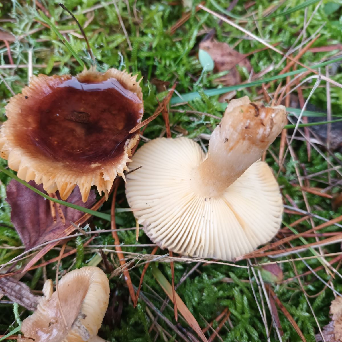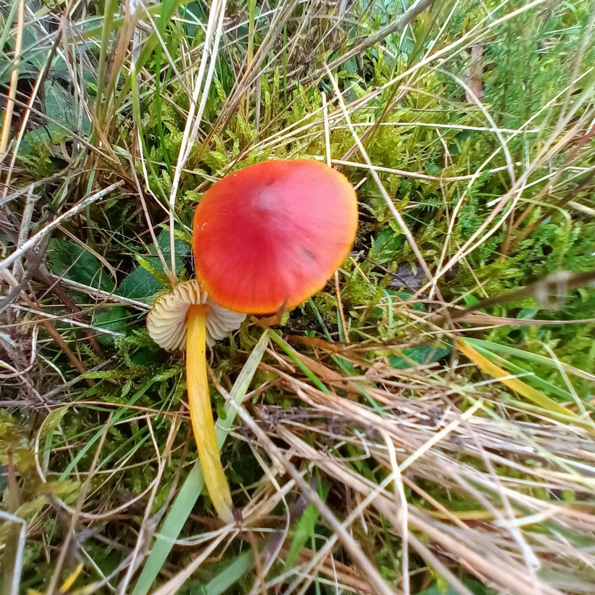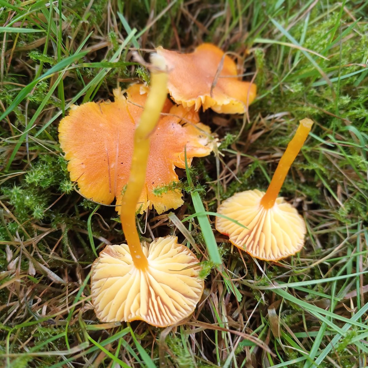 Könnte das ein Pfifferlingssaftling sein? Weil die Lamellen herablaufend sind?