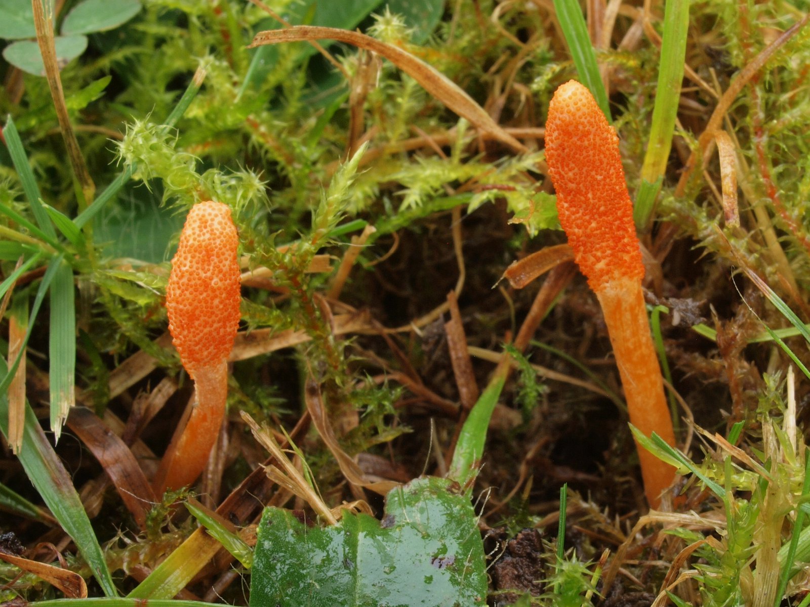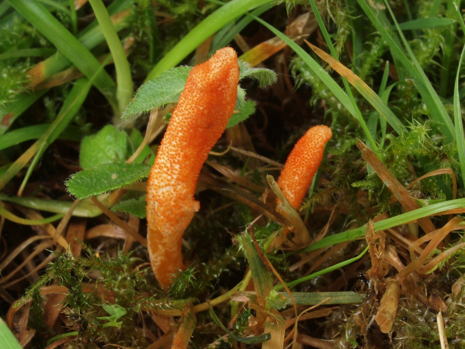 Erstaunlich oft zeigten sich Gruppen der Puppenkernkeule (Cordyceps militaris)