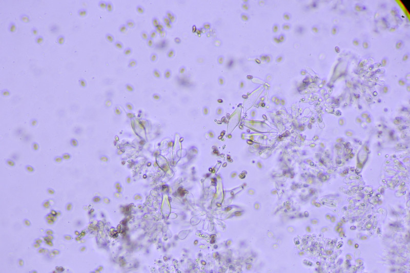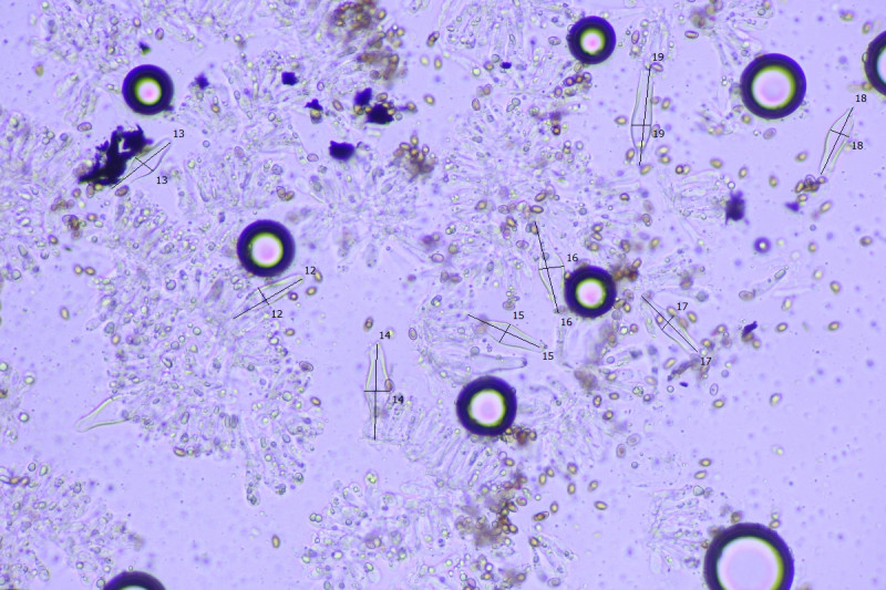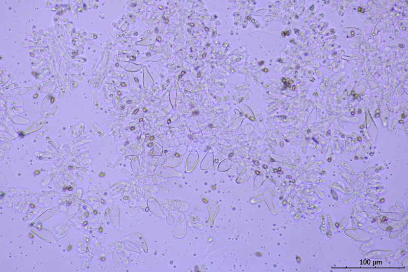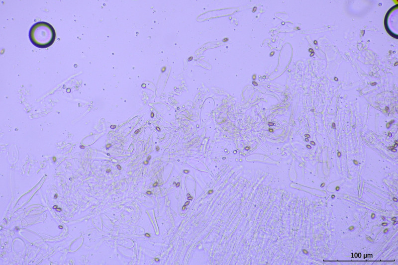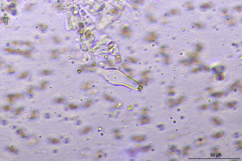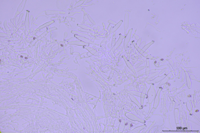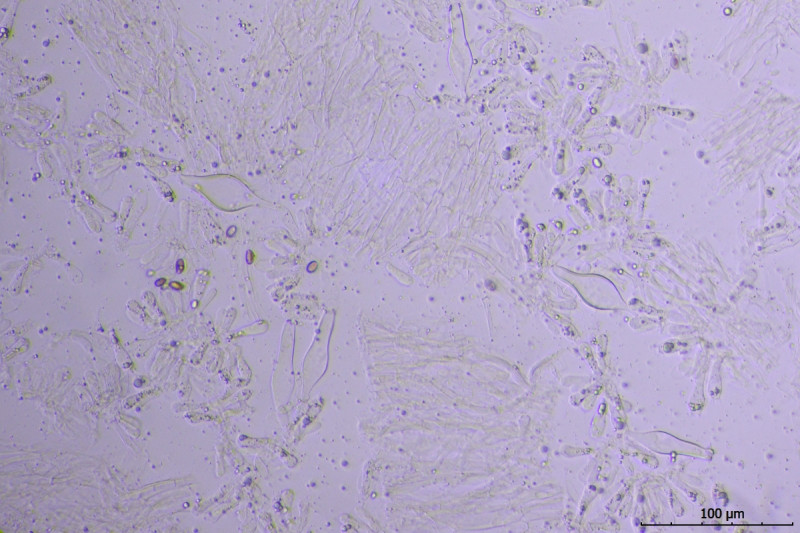 Larix, Quercus, Fagus. Boden potentiell basisch am Wegrand (keine Bodenprobe genommen, aber es wurden kalkliebende Arten an anderer Stelle am Wegrand gefunden). Wenige Caulozystiden gegabelt und hyphoide Elemente
